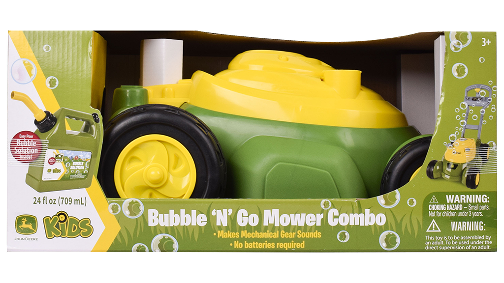 Zeleno-žltá kosačka na trávu vydáva bubliny a zvuky ozubených kolies, keď ju deti tlačia. Súčasťou je aj kanister s bublinkovým roztokom, ktorý robí hru na role ešte zaujímavejšou. Táto hračka rozvíja predstavivosť a poskytuje deťom hodiny zábavy, pričom sa môžu cítiť tak, akoby aj ony pomáhali v záhrade.