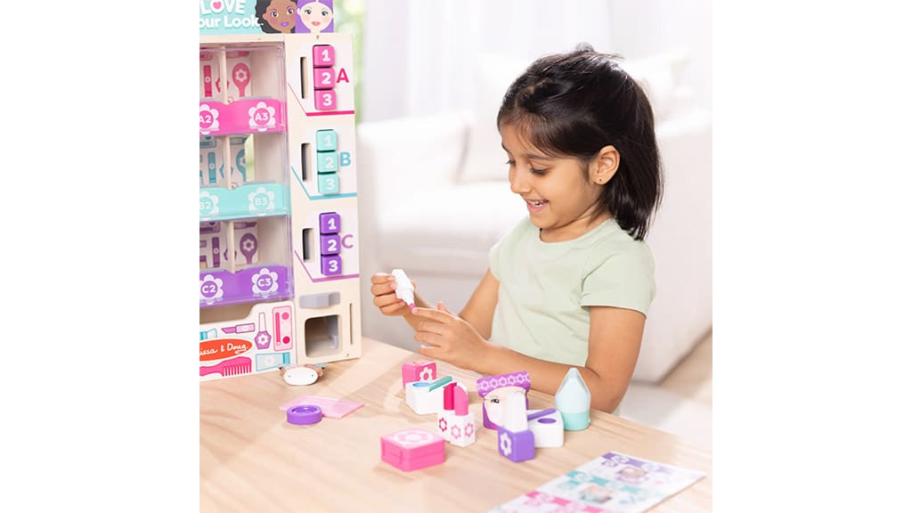 Melissa & Doug teraz úplne obnovuje svoju veľmi obľúbenú súpravu hračiek Vending Machine! Tento set, ktorý napodobňuje predajný automat, bol už doteraz obľúbený u mnohých detí, teraz sa však vracia v ešte vzrušujúcejšom, farebnejšom a detailnejšom prevedení. Vďaka vylepšeniam môžu deti zažiť ešte realistickejšie zážitky, pričom hravou formou sa učia o používaní peňazí, nakupovaní a situáciách každodenného života. Cieľom spoločnosti Melissa & Doug je priniesť radosť z kreatívnej hry do každej rodiny a nová verzia súpravy Vending Machine je na to dokonalou voľbou!Zoradiť, naplniť a vybrať! Sada hry Beauty Kiosk kombinuje imaginárnu hru s dôležitými rozvojovými zručnosťami, ako je párovanie, počítanie a rozpoznávanie písmen. Nový automat nevydáva pochutiny, ale drevené kozmetické produkty, ktoré si deti môžu usporiadať a uložiť na poličku. Od kontroly zásob až po vytváranie imaginárnych mejkapov sa rozvíja sebavedomie a myslenie detí, pričom môžu ukázať svoj vnútorný lesk. Táto hra nie je len zábavná, ale podporuje aj rozvoj sociálnych zručností a jemnej motoriky, zatiaľ čo sa deti učia a tvoria pri hraní rolí.