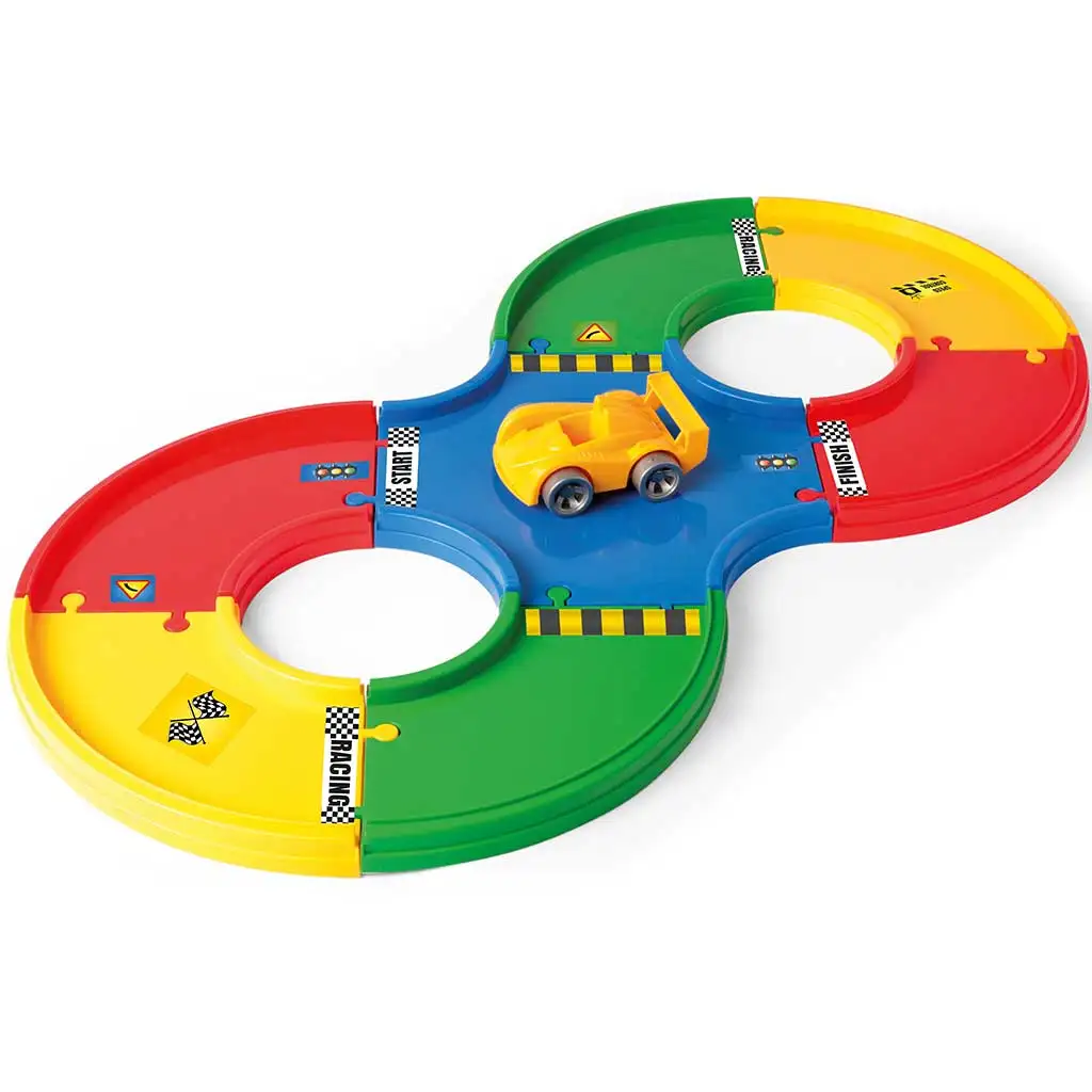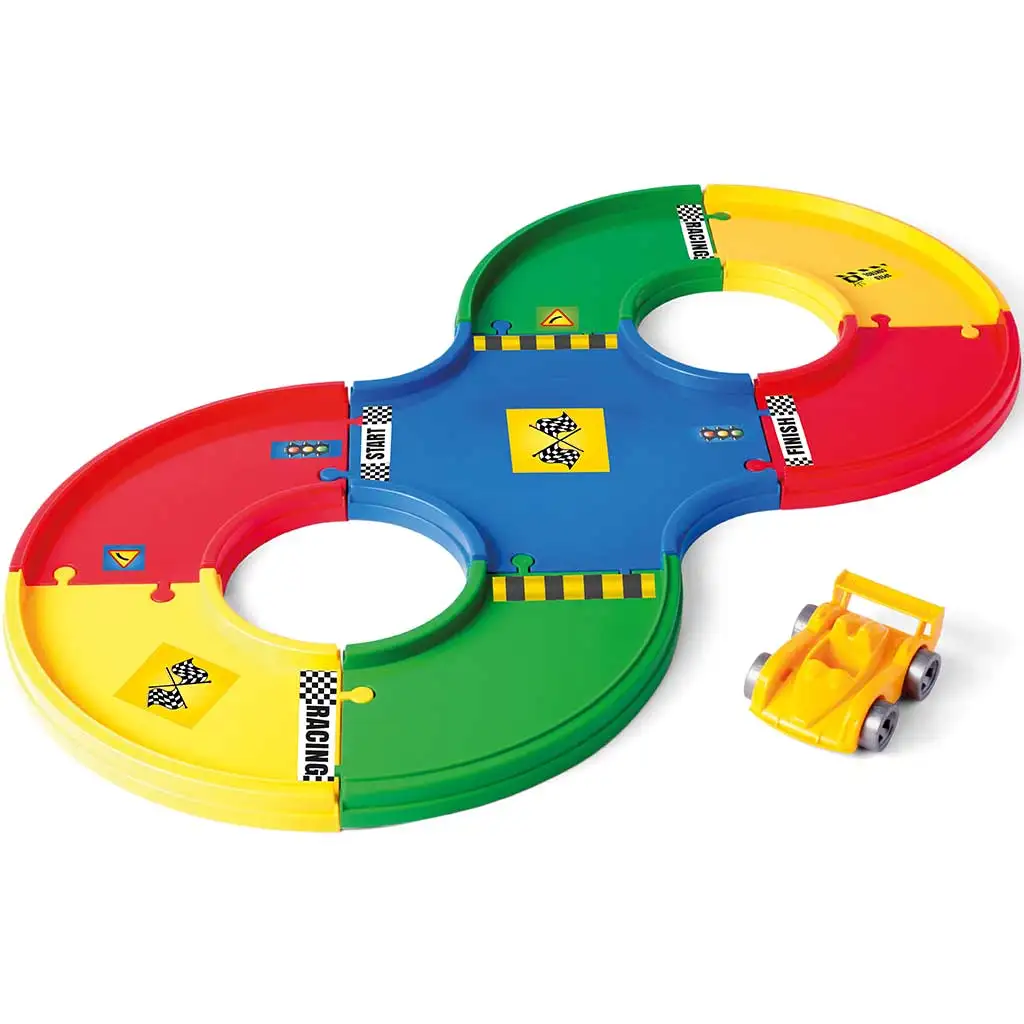 Základná sada rýchlostných tratí Wader Play Tracks je určená pre milovníkov rýchlosti! V tejto sade nájdete všetko, čo potrebujete pre vzrušujúce autíčkové preteky: 1,6 metra dlhú trať, pretekárske auto a 36 nálepiek pre úplné prispôsobenie. Ľahko montovateľné diely trate zabezpečujú, že malí pretekári budú pripravení na prvý veľký závod už za pár minút. Rôzne farby a označenia na autodráhe nielenže potešia oko, ale tiež neustále zaujmú pozornosť detí, zatiaľ čo rozvíjajú ich zručnosti a koordinačné schopnosti. S pomocou nálepiek môže každý dať trati a autu jedinečný vzhľad.