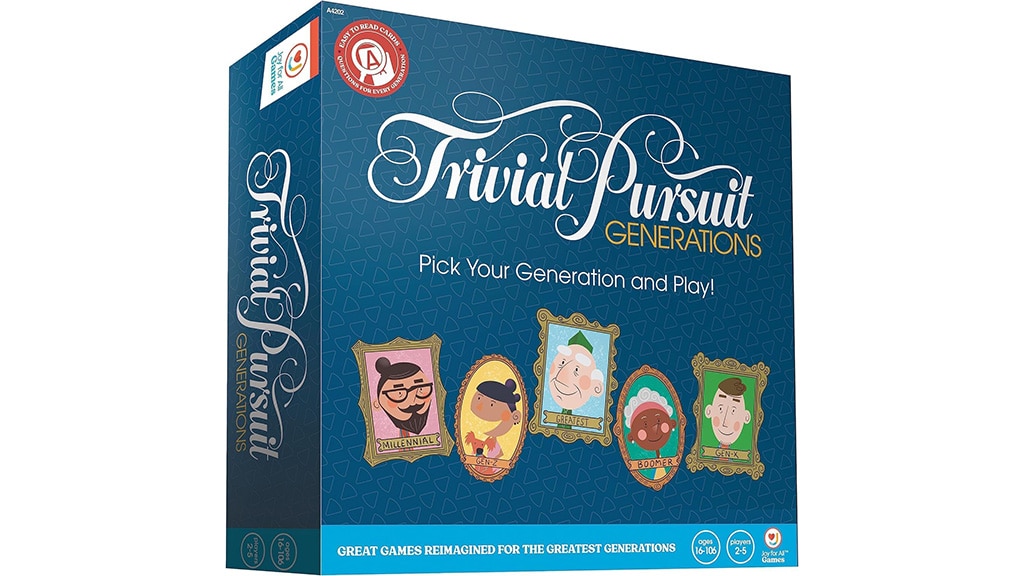 Rodiny si teraz môžu zahrať novú edíciu hry Trivial Pursuit, ktorá obsahuje generácii špecifické a osobné otázky na ľahko čitateľných kartách. Hra je rozdelená do šiestich tradičných kategórií a obsahuje celkovo 1 500 otázok, ktoré sú určené pre Najväčšiu generáciu, Baby Boomers, Generáciu X, Miléniovú generáciu a Generáciu Z. Táto hra ponúka možnosť, aby sa rôzne generácie lepšie spoznali a spoločne si užili zábavu. Otázky sú rozmanité a vzrušujúce, takže prinášajú výzvy a prekvapenia pre všetky vekové kategórie. Počas hry si členovia rodiny môžu nielen otestovať svoje vedomosti, ale aj naučiť sa nové veci o sebe navzájom a o rôznych obdobiach sveta.