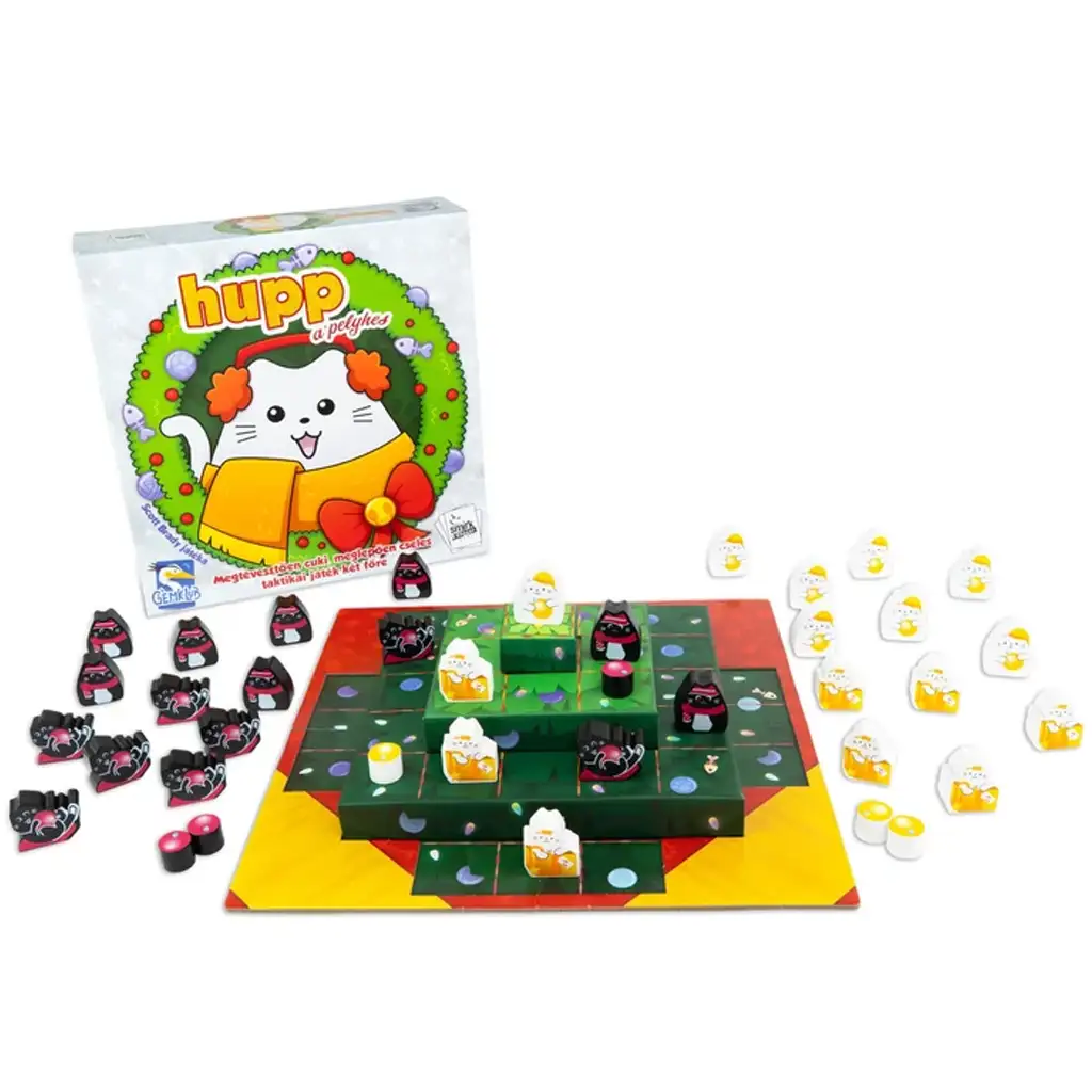 Zdanlivo roztomilý, prekvapivo záludný taktický súboj pre dvoch hráčov – to je Hupp, pelyhes, kde vianočný stromček nie je plný len ozdôb, ale aj prefíkaných mačiek! Hra pôsobí na prvý pohľad očarujúco – veď kto by nechcel rozmiestňovať figúrky mačiek v sviatočných svetroch so zabaleným darčekom okolo stromčeka? Nenechaj sa však zmiasť chlpatým vzhľadom – táto hra je skutočná hlavolamová výzva, kde záleží na každom ťahu!