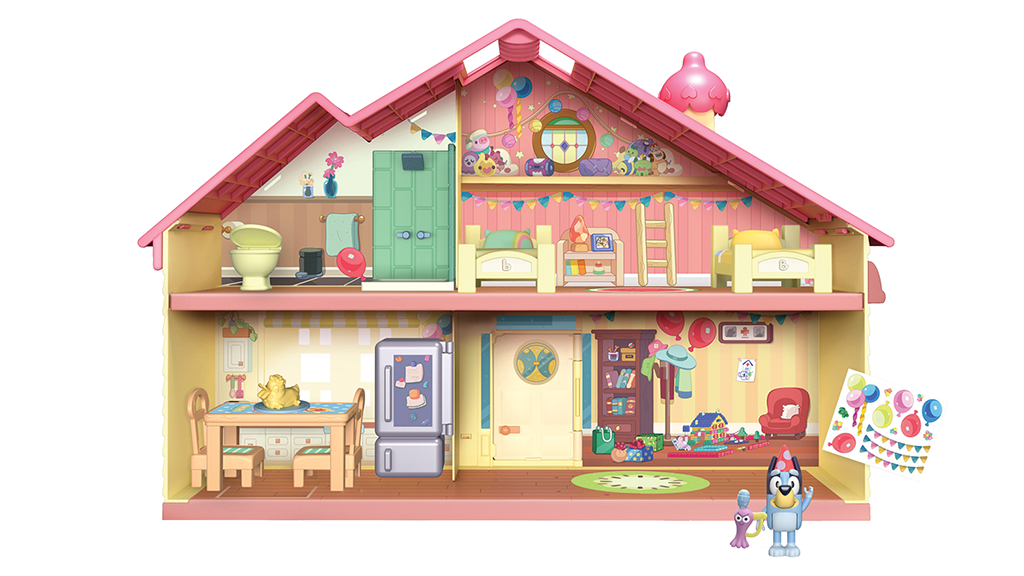 Tento aktualizovaný dvojúrovňový herný set prichádza s 11 doplnkami, ktorými môžete zariadiť izby, a s nálepkami, aby ste vytvorili sviatočnú atmosféru na Blueyho narodeniny. Herný set obsahuje jedinečnú figúrku Blueyho s párty klobúkom a novú sprchu do kúpeľne. Kuchyňa je vybavená chladničkou a rúrou, aby bola hra ešte vzrušujúcejšia. Deti budú milovať, ako si môžu vytvárať vlastné príbehy a prežívať Blueyho dobrodružstvá v tomto detailne prepracovanom dome.