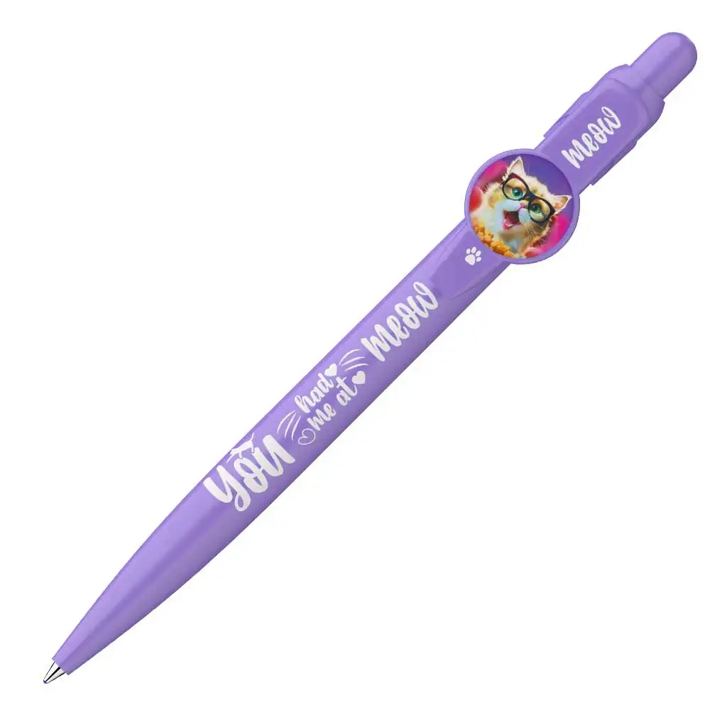 ICO: Guľôčkové pero s mačkou, pastelová fialová