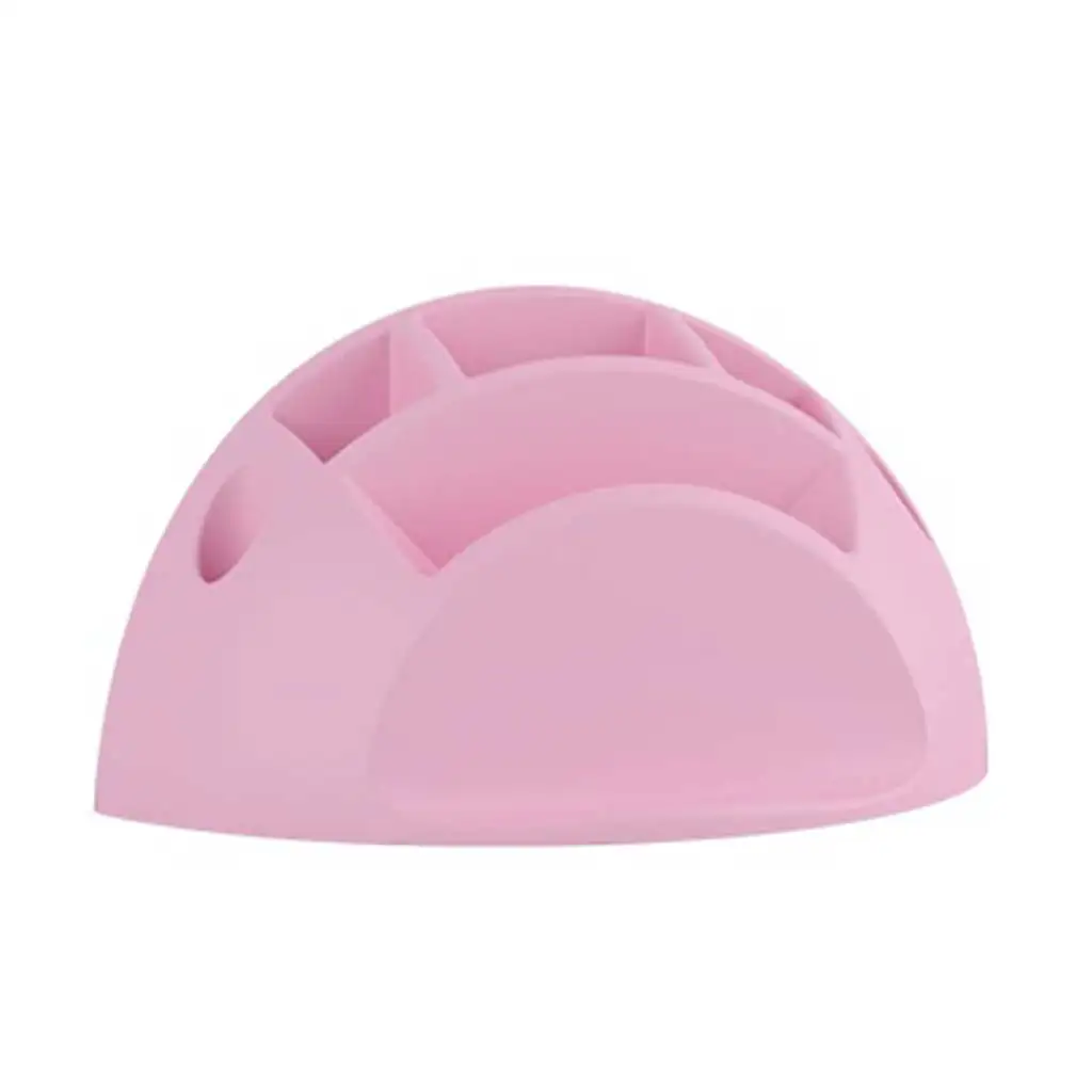 Smart stojan na písacie potreby – pastelovo ružový je praktické a dekoratívne riešenie na organizáciu pracovného stola, najmä pre deti, školákov alebo tých, ktorí majú radi pekné a usporiadané pracovné prostredie. Polkruhový, kompaktný dizajn obsahuje niekoľko rôznych veľkostí priehradiek, ktoré pomáhajú prehľadne uložiť ceruzky, perá, gumu, pravítko, lepidlo alebo iné menšie nástroje. Stojan je vyrobený z ľahkého, ale pevného plastu, takže je bezpečný na použitie aj v detskej izbe. Jemná pastelovo ružová farba vyžaruje priateľskú atmosféru a funguje ako krásny, harmonický doplnok v každom študijnom kútiku.