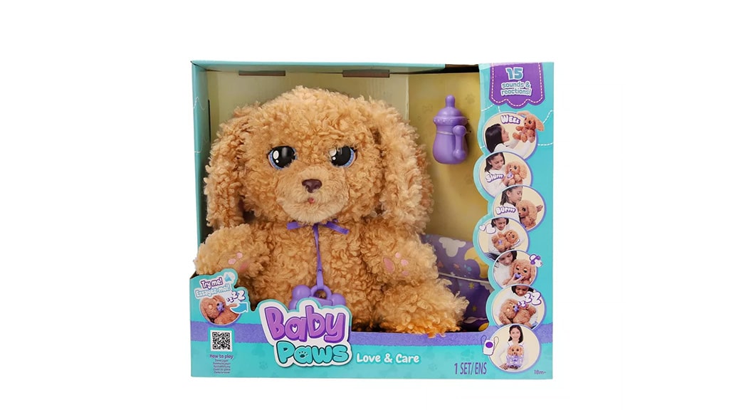 Táto hra učí rešpekt, zodpovednosť a starostlivosť prostredníctvom realistickej hry. Je ideálna pre deti, ktoré chcú psa, a pre rodičov, ktorí nemajú radi neporiadok! Hra so psom má 15 rôznych reakcií a zvukov: šteká, breše, grgá, srká, chrápe a vyzerá, akoby dýchal, keď sa jeho bruško pohybuje hore a dole. Rodičia si môžu stiahnuť aplikáciu Baby Paws a zadať údaje svojho dieťaťa Baby Paws pre simulovanú návštevu veterinára. Deti sa môžu cítiť, akoby sa skutočne spájali s novým rodinným priateľom, keď ho hladkajú, vybavujú doplnkami a počúvajú!