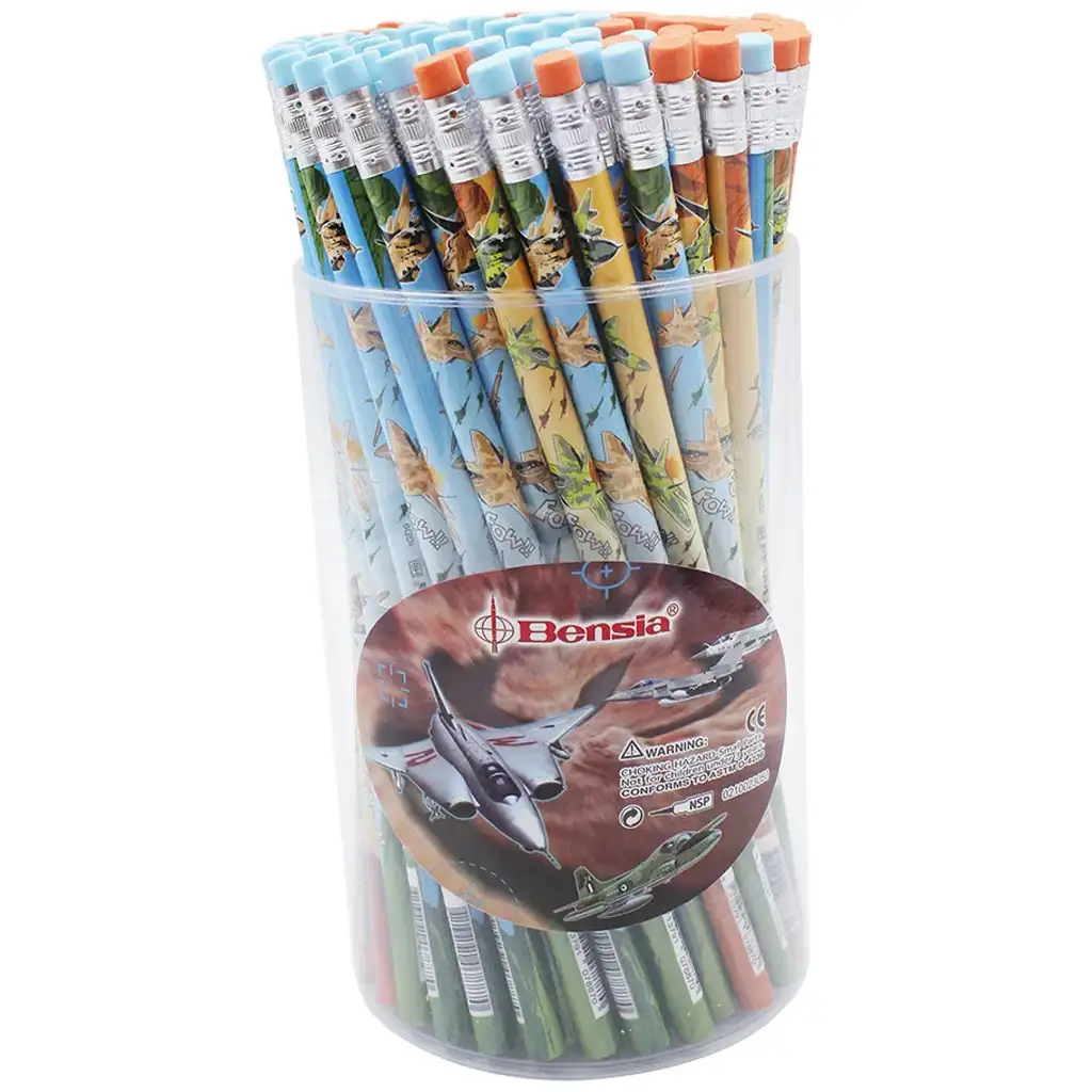 Ak vaše dieťa miluje lietadlá a výnimočné písacie potreby, grafitová ceruzka Bensia s motívom lietadla bude preňho perfektnou voľbou! Tieto jedinečné ceruzky nie sú len praktickými písacími potrebami na školské alebo domáce použitie, ale vďaka vzrušujúcemu dizajnu sa stanú obľúbenými pre všetkých milovníkov lietania. Na celom povrchu ceruziek sú farebné vzory stíhačiek a bojových lietadiel, vďaka čomu je písanie zážitkom!