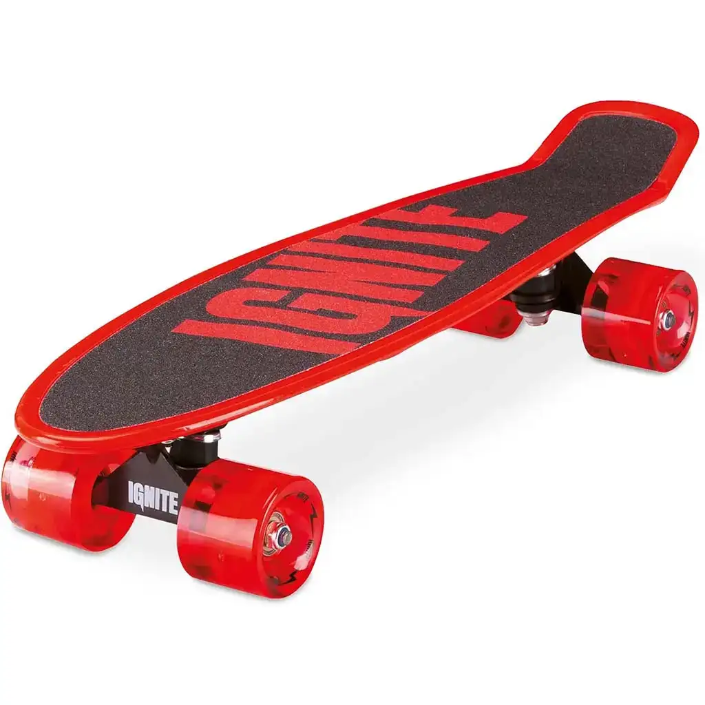 Odolná plastová doska zabezpečuje stabilné držanie, zatiaľ čo protišmykový povrch sa postará o to, aby malý skateboardista vždy stál bezpečne. Červeno-čierna farebná kombinácia a nápis „IGNITE“ dávajú doske naozaj cool vzhľad, takže určite upúta všetky pohľady.