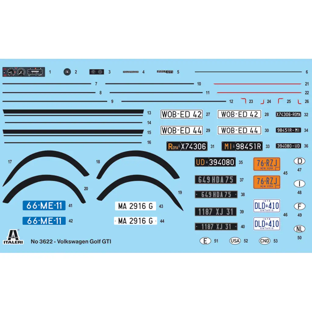 Tento prémiový model v mierke 1:24 od Italeri verne reprodukuje detaily prvej generácie VW Golf GTI. Model má dĺžku 15,2 cm a je starostlivo vypracovaný s detailnou karosériou, interiérom a zavesením. Sada obsahuje pneumatiky a jemne vypracované plastové diely, ktoré zabezpečujú realistický vzhľad. Presné spracovanie modelu umožňuje, aby ho ľahko zostavili začiatočníci aj pokročilí modelári.
