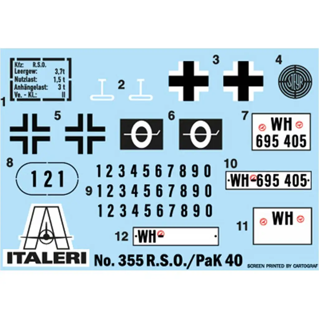 Tento model od Italeri v mierke 1/35 detailne zobrazuje charakteristický dizajn a konštrukciu RSO/PaK 40. Jemne gravírované pancierové dosky, realistický podvozok a precízne spracovaná výzbroj poskytujú vynikajúci modelársky zážitok. Sada obsahuje lepiteľné gumové pásy a tri rôzne možnosti nálepiek, čo umožňuje modelárom historicky verné zobrazenie.