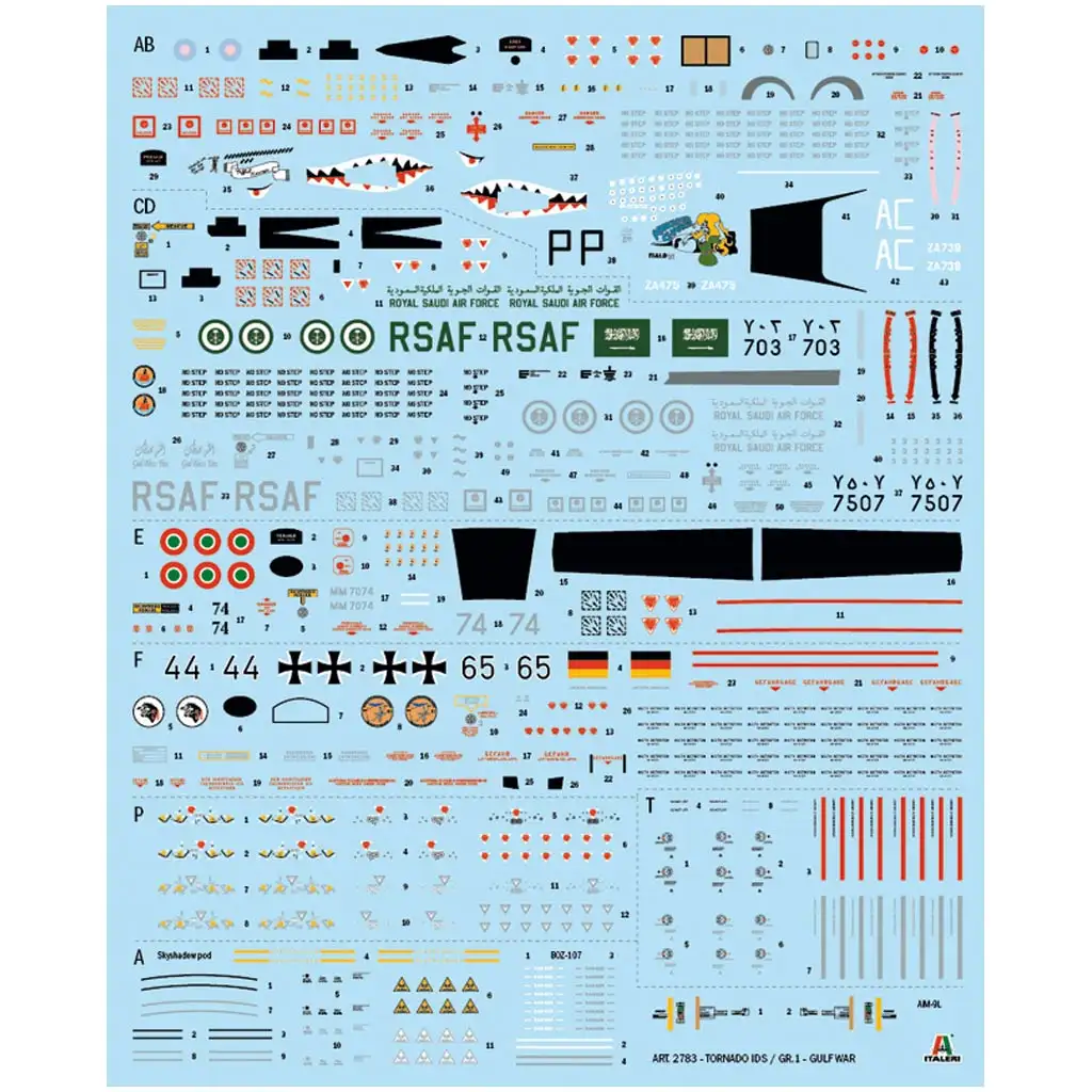 Tento prémiový model od Italeri v mierke 1/48 je mimoriadne detailne spracovaný a verne zachytáva charakteristické črty Tornada GR.1/IDS. Panelové línie sú precízne spracované, kokpit, podvozok a výzbroj sú zobrazené s realistickými detailmi. Súprava obsahuje rôzne možnosti nálepiek, vrátane jedinečných kamufláží britských a talianskych verzií nasadených počas vojny v Perzskom zálive.