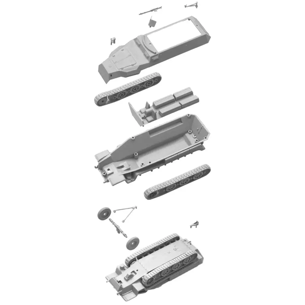 Tento model v mierke 1:72 od Italeri je vyrobený s vynikajúcou úrovňou detailov a obsahuje dva polopásové vozidlá, ktoré je možné zostaviť s rôznymi možnosťami maľovania. Diely navrhnuté pre rýchlu montáž sú ideálne pre začiatočníkov aj skúsených modelárov. Model má veľkosť 8,5 cm, čo presne odráža proporčné zmenšenie pôvodného bojového vozidla.