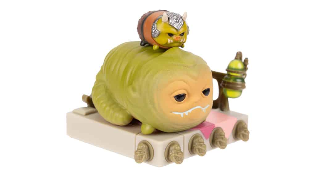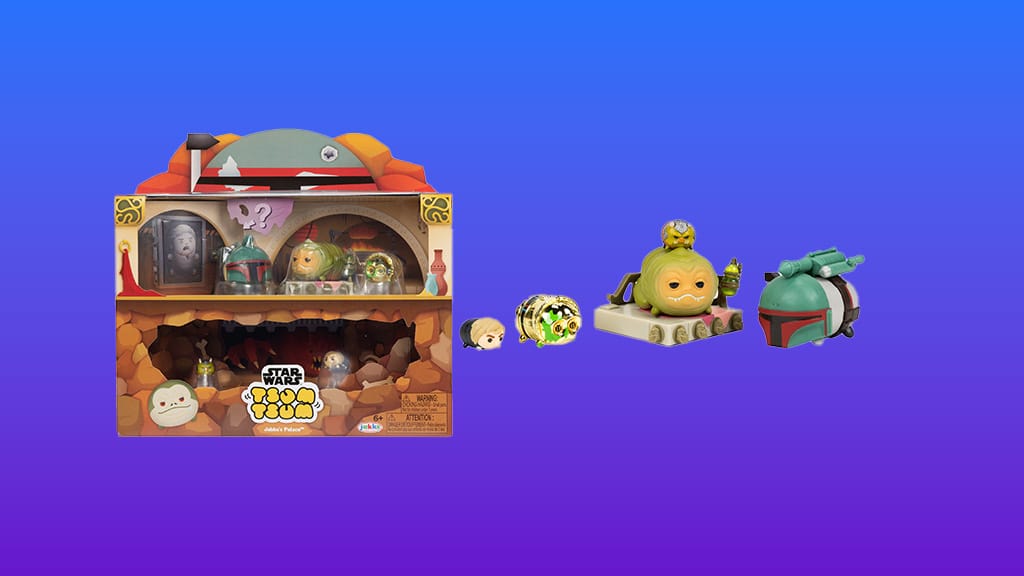JAKKS Pacific Star Wars Tsum Tsum Jabba Palác Deluxe Sada je navrhnutá pre mladých, intergalaktických fanúšikov, ktorí milujú túto franšízu. Tieto malé figúrky sú inšpirované filmom Star Wars: Návrat Jediho, vrátane kľúčového momentu, keď Luke Skywalker bojuje s Jabbom, Huttom. Sú malé, ale silné, a medzi figúrkami v sade nájdete veľkého Bobu Fetta (3,8 cm), veľkého Jabbu, Hutta, stredného C-3PO (2,5 cm), malého Gartogga (1,3 cm), malého Lukea Skywalkera a jednu prekvapivú postavu. Sada obsahuje aj veľký doplnok, trón Jabbu, Hutta. Krabica na hračky zároveň slúži ako zberateľská vitrína.