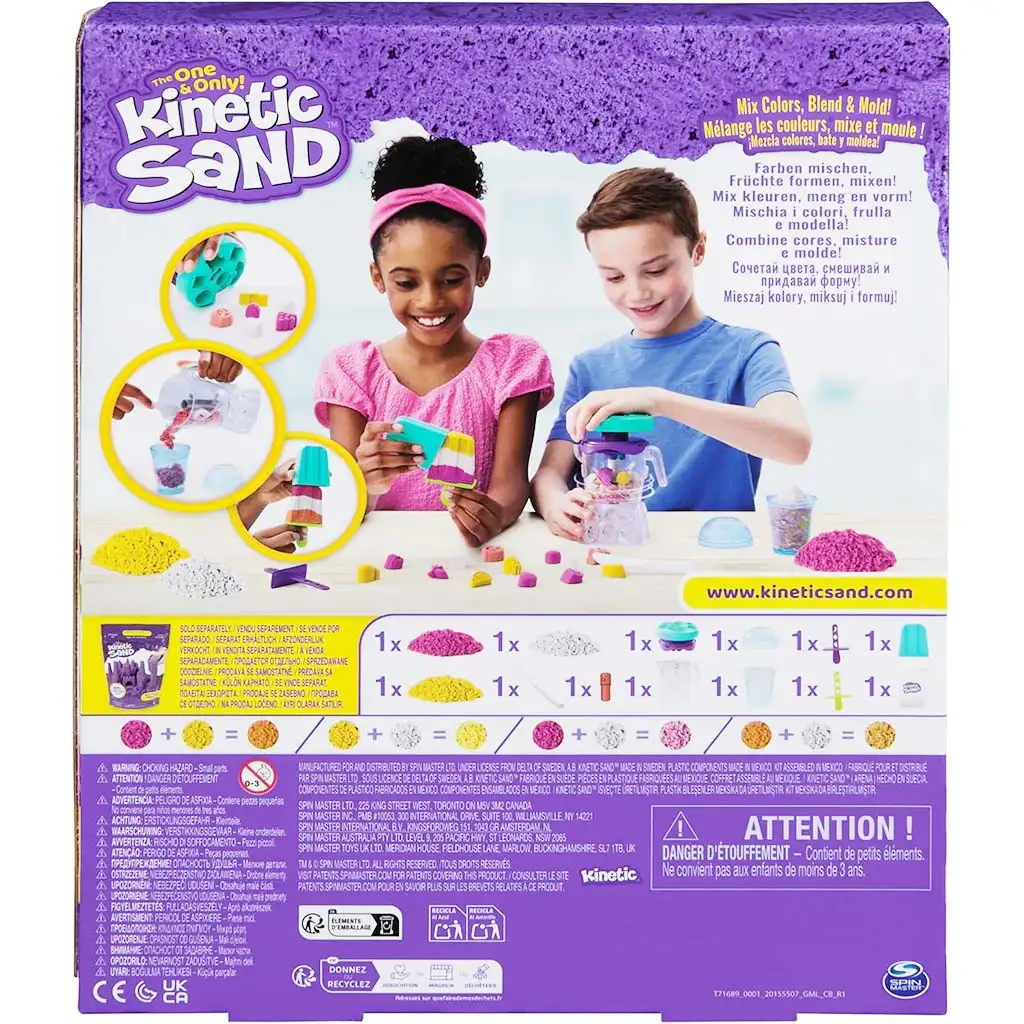 Ústredným prvkom sady je herný mixér, do ktorého možno vložiť pieskovú hmotu rôznych farieb. Pomocou otočnej páky sa farby môžu miešať, vrstviť a potom naplniť do pohárikov alebo foriem na nanuky. Pôsobivé farebné prechody zaručene nadchnú deti, pričom si nenápadne rozvíjajú zručnosť, kreativitu a jemnú motoriku. Pribalené formy a doplnky ponúkajú ešte viac možností, takže žiadny výtvor nebude rovnaký.