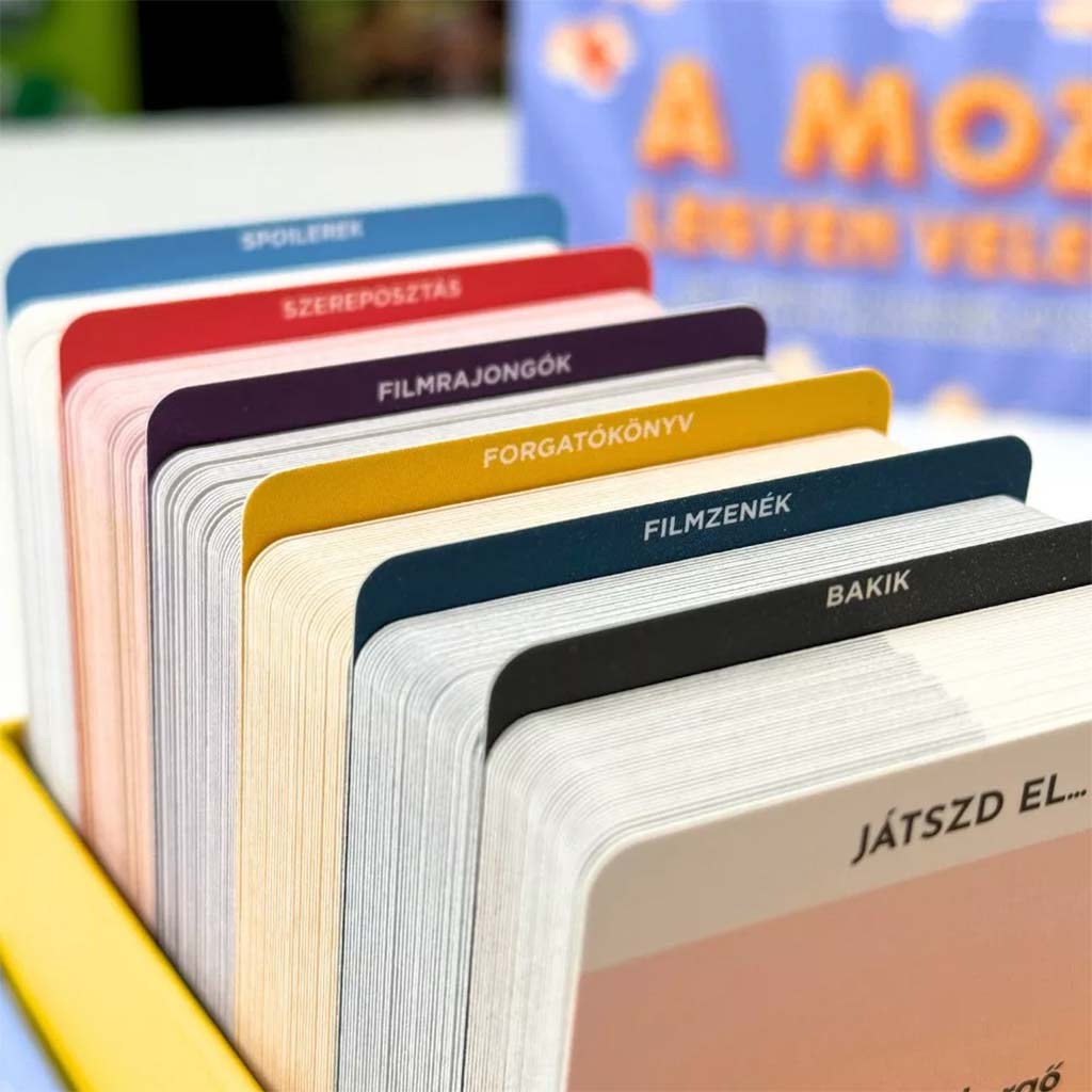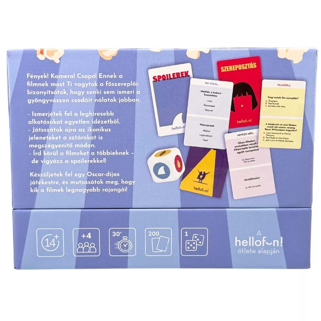 Spoločenská hra „A mozi legyen veled!” je ideálna voľba, ak chcete zorganizovať veselý, smiechom naplnený večer pre rodinu alebo pre staršie deti. Táto hra je skutočná filmová dobrodružná krabica, v ktorej sa striedajú vzrušujúce a tvorivé úlohy, takže si každý nájde svoju obľúbenú rolu. Počas hry budete hlavnými postavami: môžete spoznať najslávnejšie filmy aj podľa jediného citátu, zahrať najikonickejšie scény alebo opisom pomôcť ostatným – samozrejme bez spoilerov!