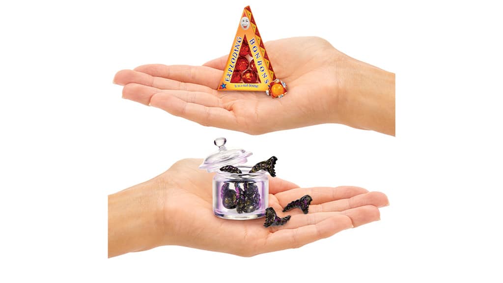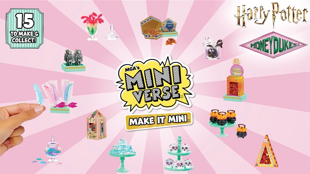 Tvoje obľúbené fantasy dezerty môžu byť mini veľkosti, ale stále sú rovnako sladké ako kedykoľvek predtým. Rodiny môžu zažiť zázrak cukrární Čarodejníckeho sveta, pretože tajomné kapsuly obsahujú všetko potrebné na znovuvytvorenie nezabudnuteľných pochúťok z franšízy Harryho Pottera. Každá kapsula obsahuje obľúbené dezerty fanúšikov, ako sú "Explodujúce bonbóny, Bertie Bottove fazuľky všetkých chutí a Čokoládové žabky."Zberatelia si môžu vziať svoje sladkosti na mini dobrodružstvá s pomocou Make It Mini Harry Potter Honeydukes Trolley. Táto magická súprava obsahuje všetky súčiastky na postavenie vozíka, ako aj exkluzívne mini repliky jedál a doplnky s cukríkovou tematikou, ako sú fľaše, tácky, krabice na cupcakes a mnoho ďalších.
