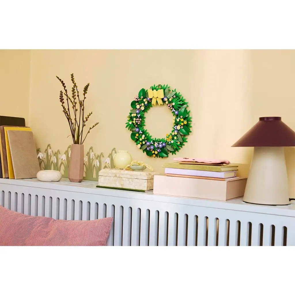 • LEGO® SEZÓNNE IKONY – Tento farebný veľkonočný a jarný veniec dopĺňa žltá mašľa, biela veľkonočná zajačia hlavička s pohyblivými ušami, 6 listových ozdôb a 6 veľkonočných vajíčok, ktoré si môžete ľubovoľne vymieňať