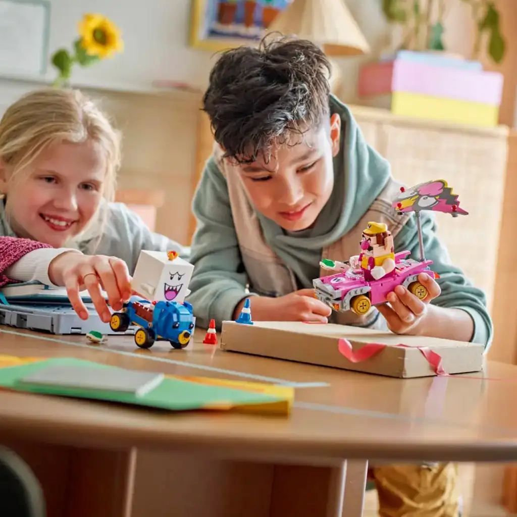 •Stavebnicové preteky Mario Kart™ – Pripoj sa k Wariovi v Badwagone a King Booovi v Teddy Buggy vo vzrušujúcich súbojoch s vystreľovaním pancierov, driftovaním, lietaním a slalomovaním medzi kužeľmi