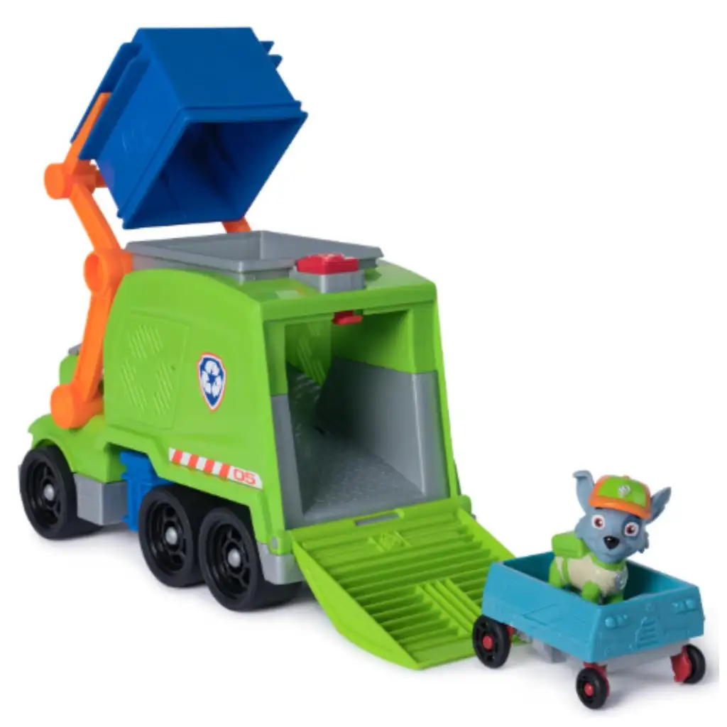 Urobte hru vzrušujúcou a naučte deti o dôležitosti ochrany životného prostredia s deluxe smetiarskym autom Crush’N’Roll Rocky z Tlapkovej patroly. Rocky, odborník na recykláciu z Tlapkovej patroly, je pripravený zbierať a recyklovať všetok odpad. Toto superzelené smetiarske auto prichádza s viacerými interaktívnymi funkciami, ako je pohyblivé rameno na vyprázdňovanie kontajnera do nákladného auta a zadné otváracie dvere, ktoré umožňujú ľahké vyprázdnenie nákladu.