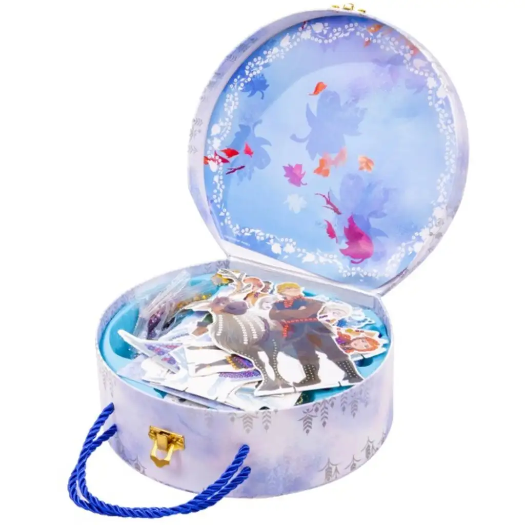 9 kartónových postavičiek, vrátane Anny, Elsy, Kristoffa a Olafa, ti pomôže vytvoriť nové dobrodružstvá s pomocou tvojej fantázie. Olafova postavička môže byť použitá aj ako prívesok na tašku, takže svojho obľúbeného snehuliaka môžeš mať vždy so sebou! Vďaka peknej, prenosnej ozdobnej krabici je sada ľahko prenosná, takže sa s ňou môžeš hrať kdekoľvek.
