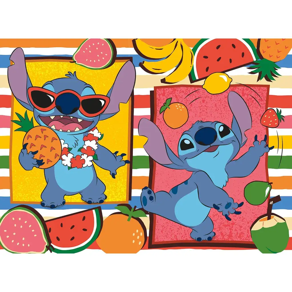 Obrázok puzzle ukazuje Stitchovu najveselšiu stránku: so slnečnými okuliarmi, ananásom v ruke si v tropickej nálade užíva ovocné leto. Živé farby pozadia a tropické ovocie robia hru ešte pútavejšou a veselšou. Väčší počet dielikov znamená aj trochu väčšiu výzvu, takže hranie je o to vzrušujúcejšie aj pre starších predškolákov.
