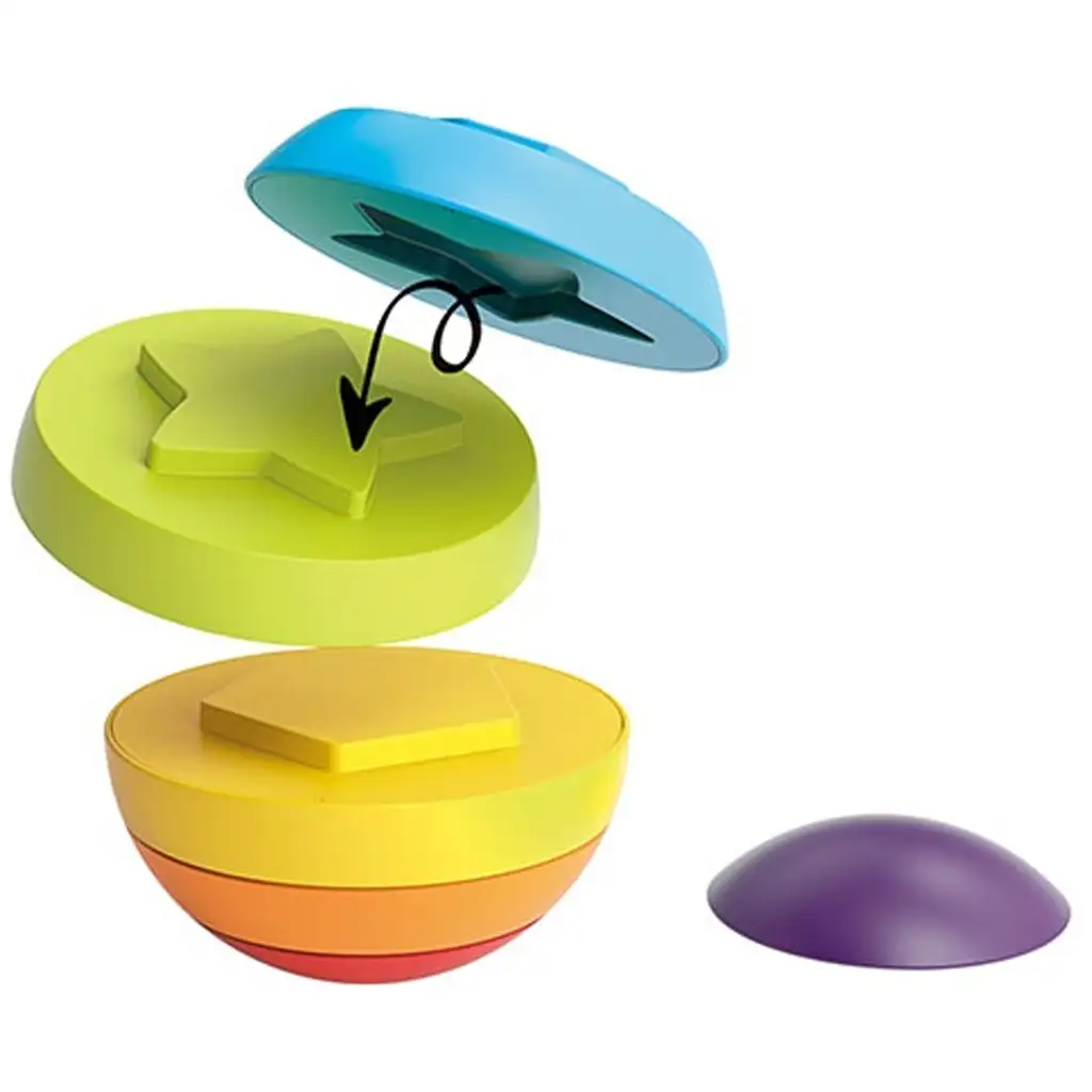 Guľa sa skladá zo šiestich rôznych farebných vrstiev, ktoré je potrebné umiestniť v správnom poradí. Rozmanitosť tvarov a spojovacích bodov robí hru vzrušujúcou, zatiaľ čo deti sa učia rozpoznávať rôzne farby a tvary. Živé farby robia hračku vizuálne príťažlivou, takže zaručene upúta pozornosť malých rúk a očí.