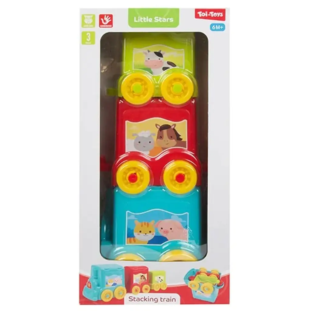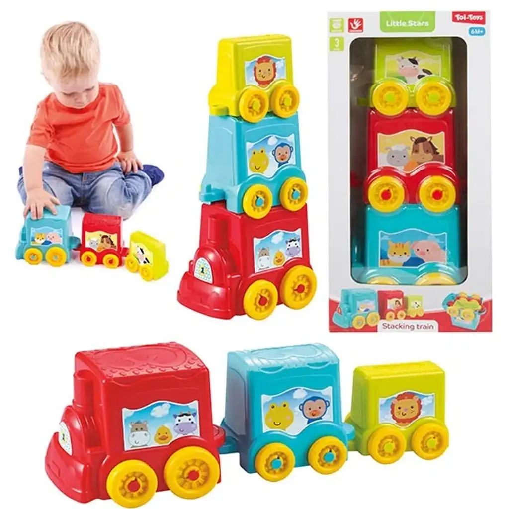 Vagóny sa ľahko skladajú na seba, takže deti môžu zažiť radosť z budovania a zároveň zlepšovať svoje jemné motorické zručnosti. Vagóny ozdobené veselými zvieracími figúrkami pomáhajú pri rozpoznávaní farieb a zvierat, ako aj pri pochopení príčinných súvislostí.