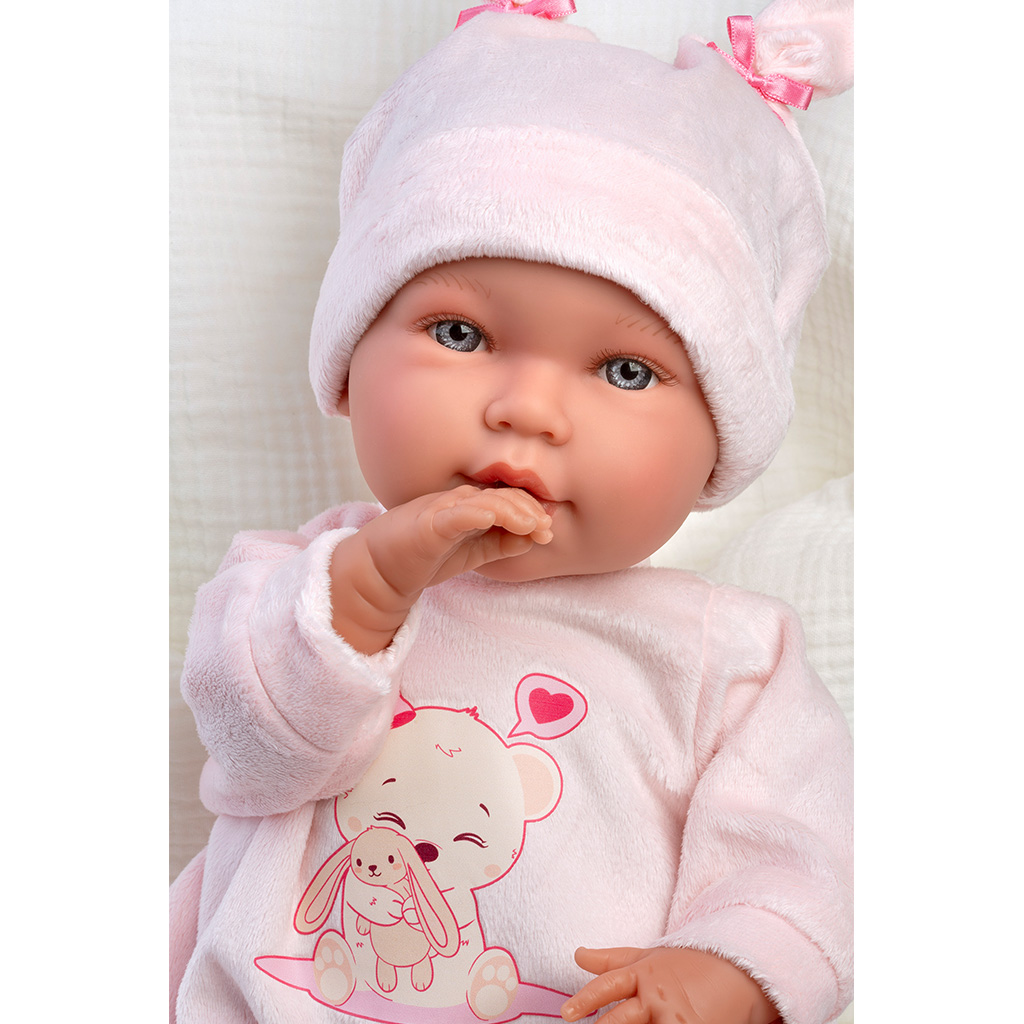 Llorens: Abril 42 cm plačúca bábika v čiapke s králičími uškami so spacím vakom