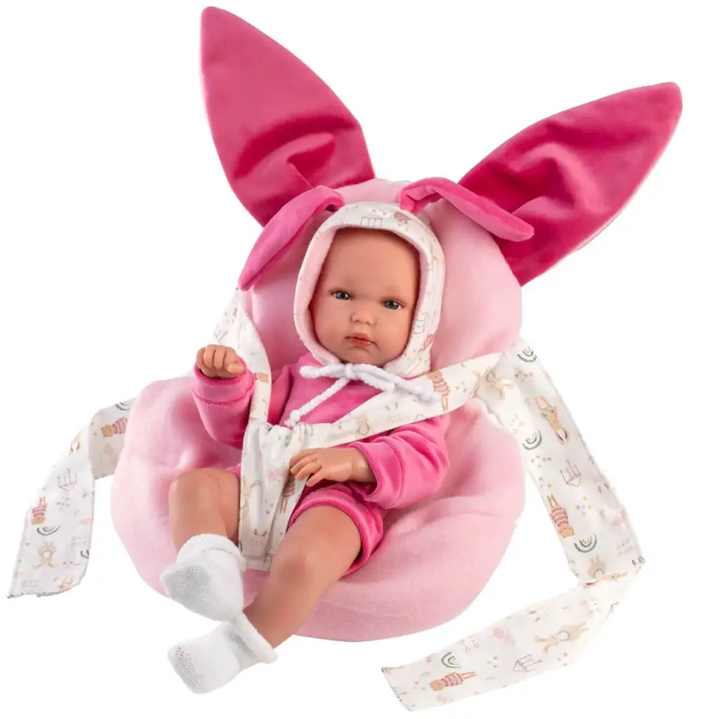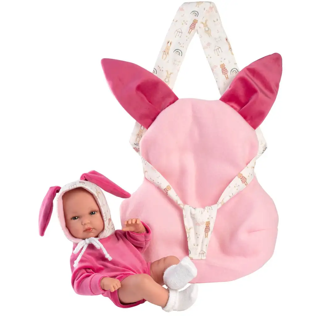 Llorens: Bimba novorodenec s ružovým zajačikovým nosičom 35 cm