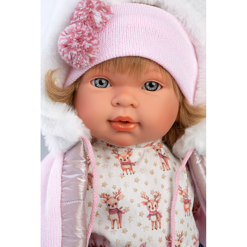 Bábika Llorens Carla, 42 cm, plačúca v modrej sukni, je skutočne očarujúca a realistická hračka, ktorá prináša radostné chvíle do každodenného života vášho dieťaťa. Starostlivo prepracovaná tvár bábiky, žiarivé oči a jemný dotyk si okamžite získajú srdcia najmenších. Roztomilý vzorovaný vršok, módna modrá sukňa a teplé ružové doplnky vytvárajú harmonický, štýlový vzhľad. Funkcia plaču a cumlík robia hračku ešte realistickejšou, takže dieťa sa o ňu môže starať, upokojiť ju a rozmaznávať svojho nového miláčika.