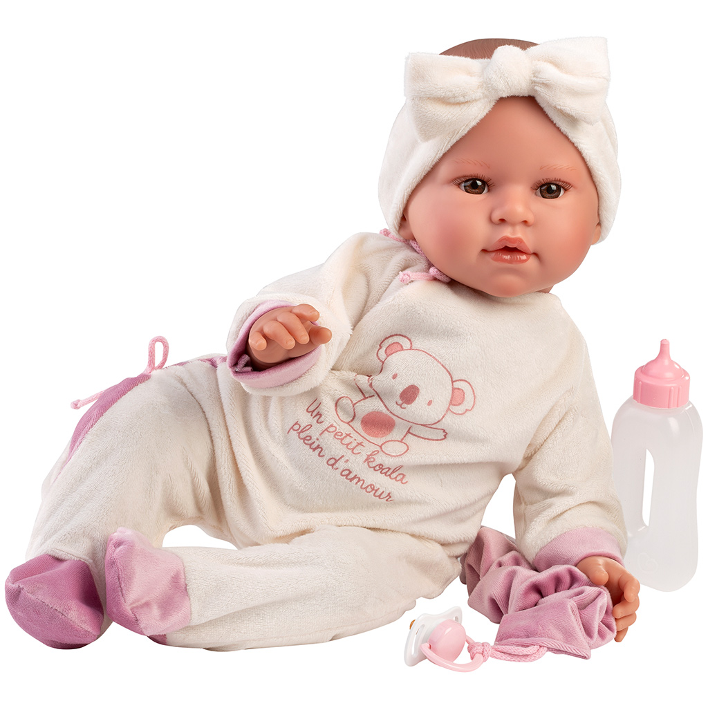 Llorens: Lea, 45 cm plačúca bábika s cumlíkom v overale s motívom koaly