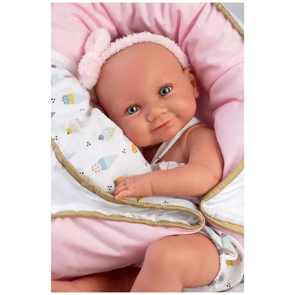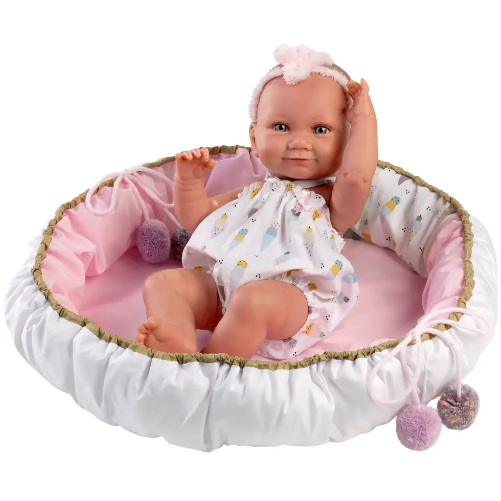 Llorens: Nica 40 cm novorodenec v oblečení s motívom zmrzliny s postieľkou