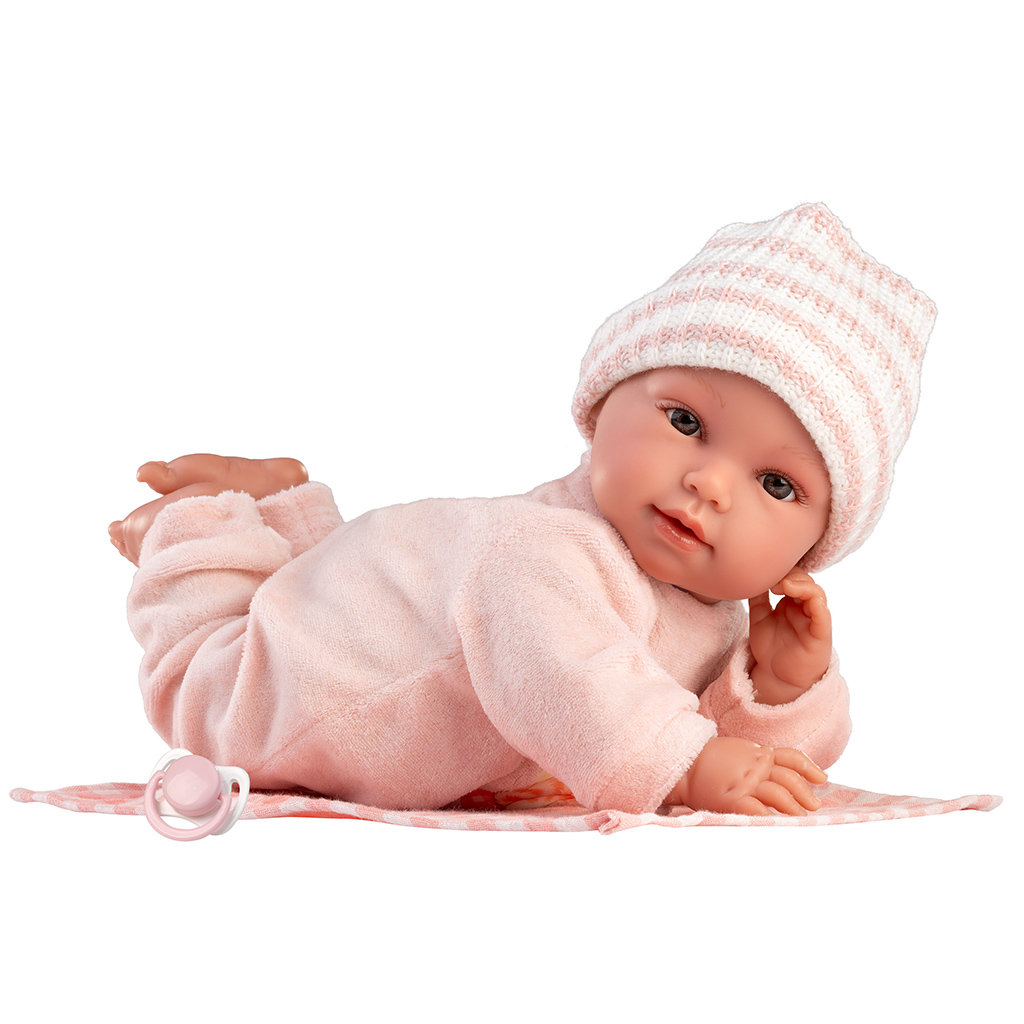 Llorens: Olivia, plačúca 38 cm bábika s kockovanou dekou