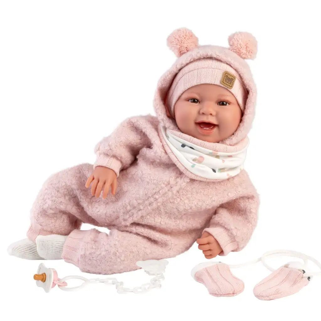 Llorens: Tala Sonrisas 44cm novorodenec s hlasom v ružovom overale