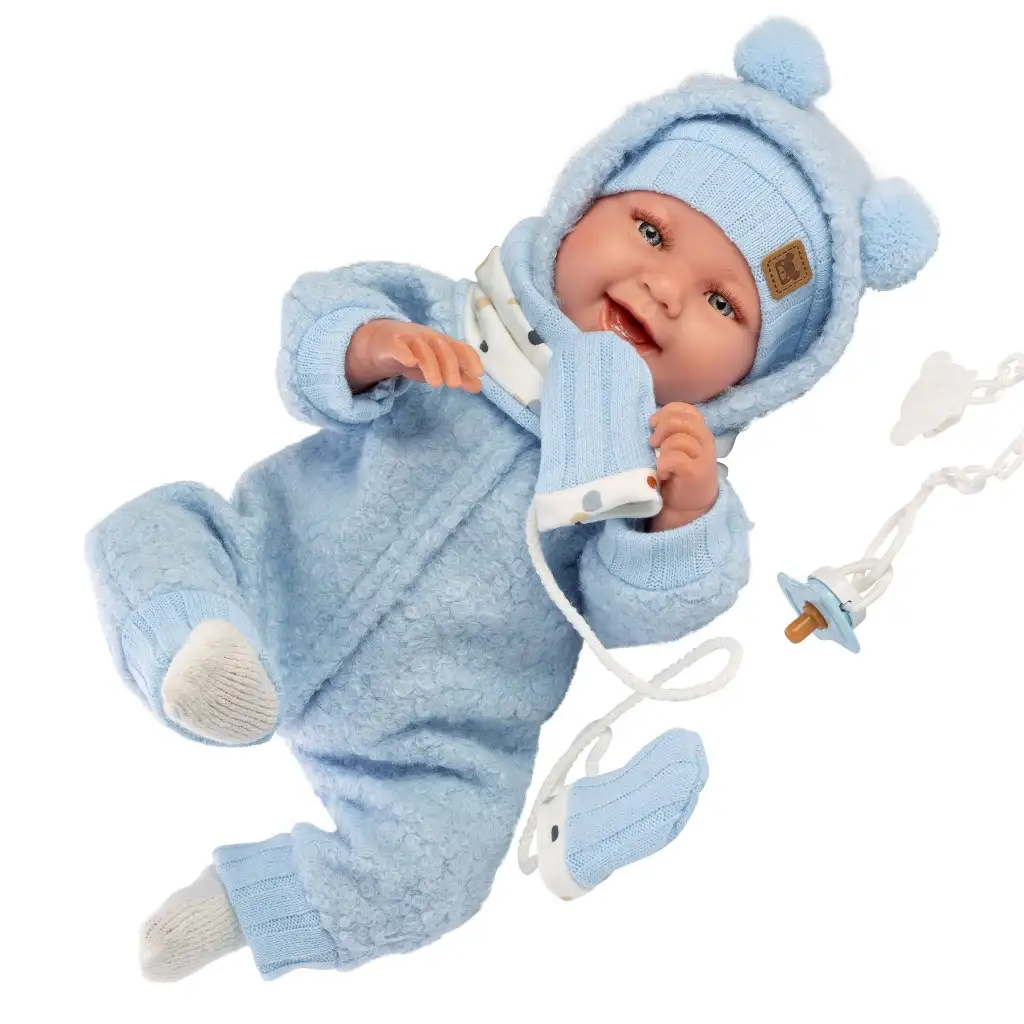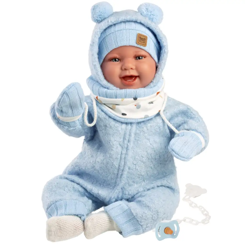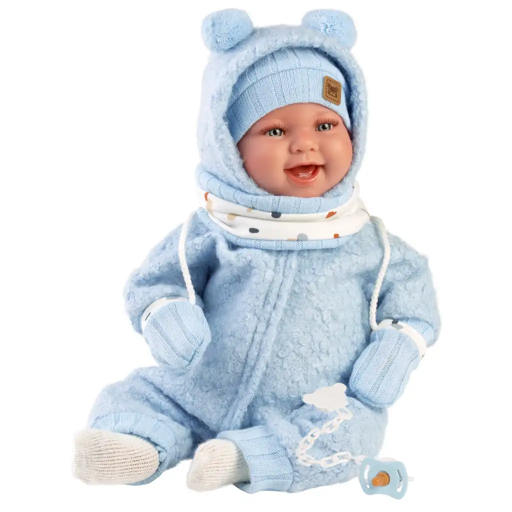 Llorens: Talo Sonrisas 44cm novorodenec s hlasom v modrom kapucňovom oblečení