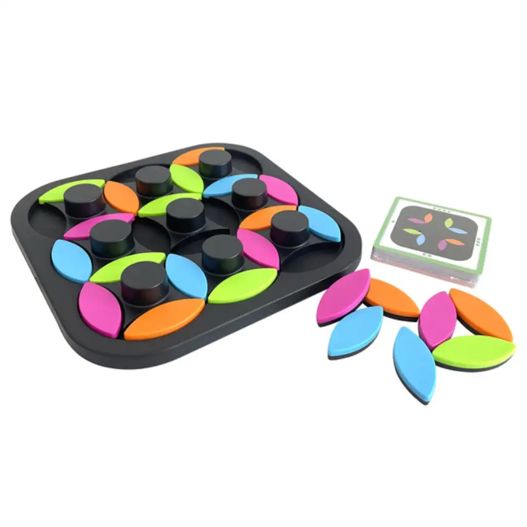 Logická stolová hra s otáčaním je zvratná výzva pre celú rodinu! Cieľom hry je otáčaním farebných kartičiek dosiahnuť zhodu so šablónou na vzorovej karte. Táto hra nie lenže baví, ale tiež rozvíja schopnosti riešenia problémov, priestorové vnímanie a rozpoznávanie súvislostí medzi farbami. Rôzne farebné kombinácie a možnosti otáčania stimulujú hráčov k premýšľaniu, zatiaľ čo si cvičia trpezlivosť a koncentráciu. Ideálny nástroj na rozvoj jemnej motoriky a skvelý spôsob, ako deti hravou formou osvojiť základné logické a matematické pojmy.
