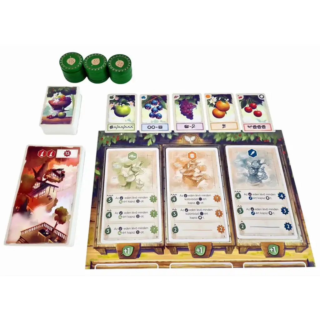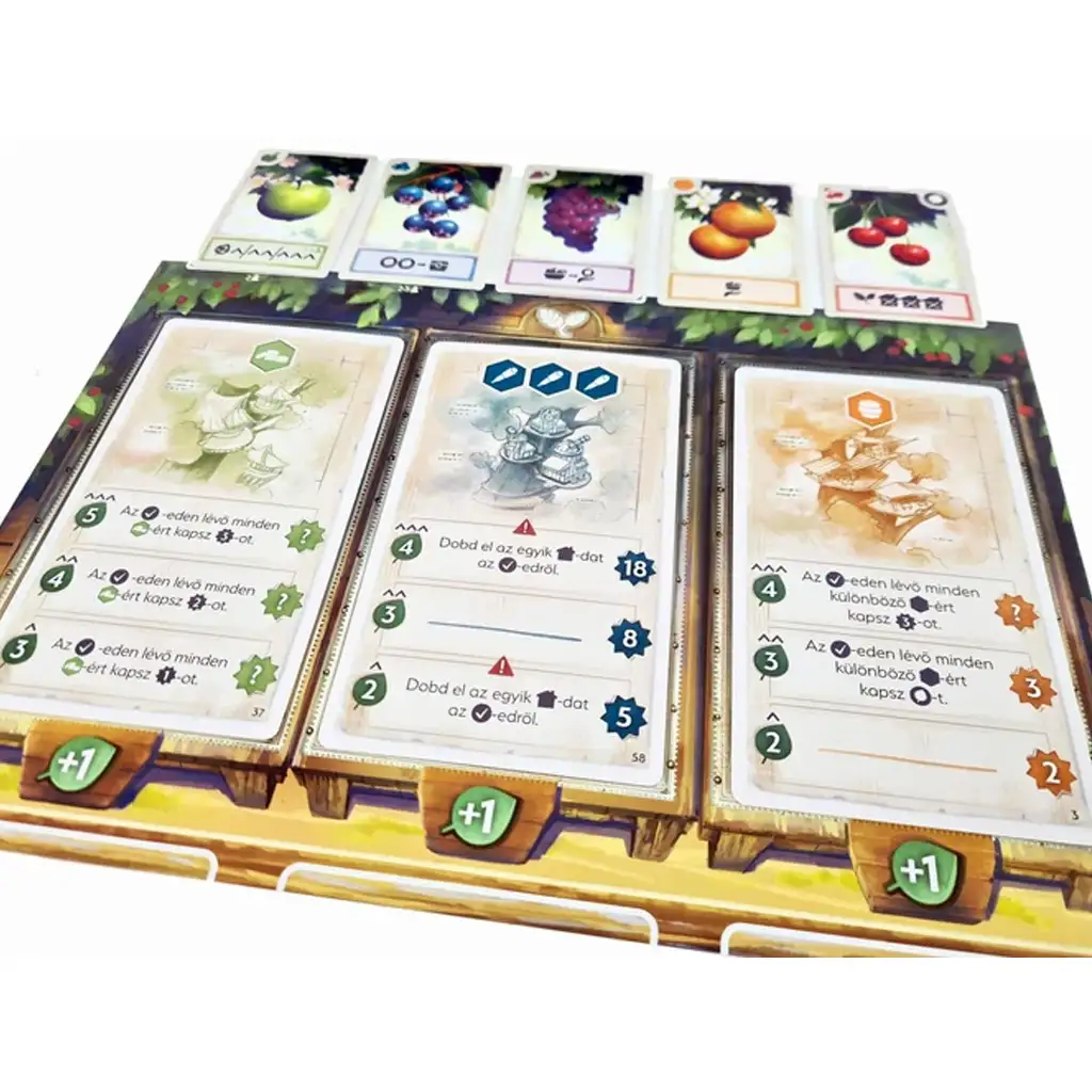 Predané karty ovocia poskytujú špeciálne schopnosti, napríklad môžete získať viac peňazí alebo vykonávať špeciálne akcie. Musíte tiež venovať pozornosť správe mincí: peniaze získané okamžite musíte minúť v danom kole, zatiaľ čo sumy uložené v truhlici si môžete ponechať na neskôr. Svoje budovy môžete rozvíjať po úrovniach a každá úplne postavená budova prináša na konci hry špeciálne bonusové body.
