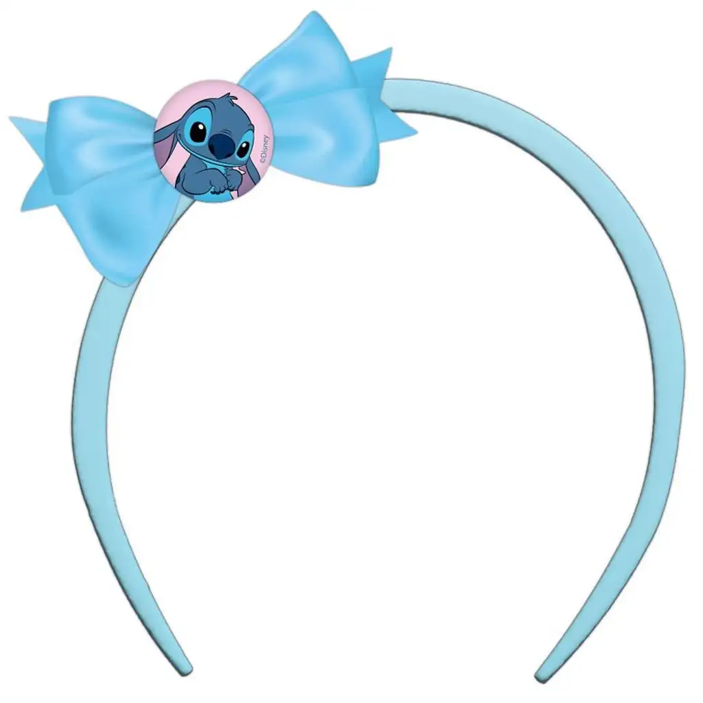 Svetlomodrá čelenka do vlasov s mašľou a motívom Stitch