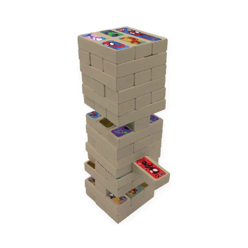Marvel Spidey 3 v 1 stolová hra je snom každého malého superhrdinu! V jednej krabici nájdeš tri vzrušujúce hry, ktoré nielen zabavia, ale aj rozvíjajú logiku, pamäť a jemnú motoriku detí. Sada obsahuje balančnú vežu (Jenga), domino a pexeso – všetko zdobené motívmi Spideyho a jeho priateľov, ako sú Ghost-Spider, Miles Morales alebo Iron Man. Deti sa radi znova a znova hrajú s farebnými drevenými dielikmi a pri hre sa hravo učia.