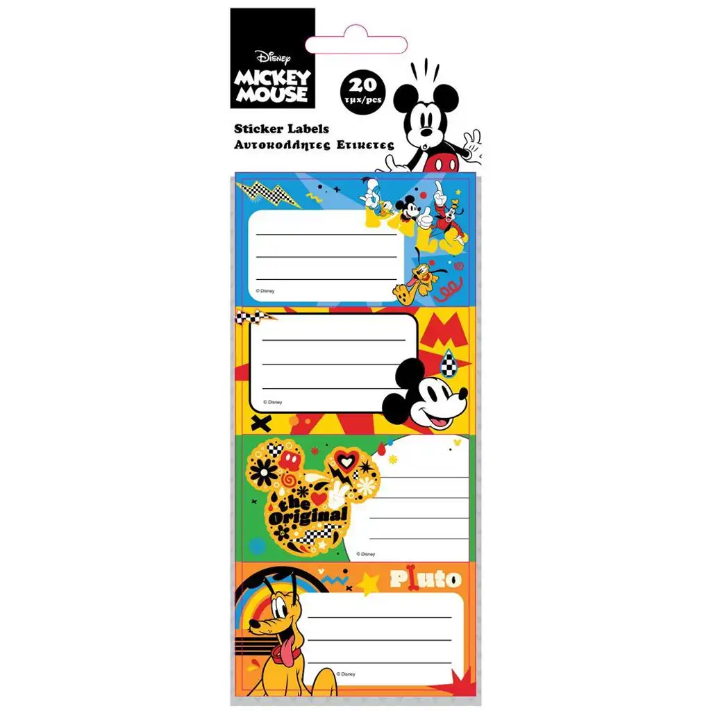 Luna: Mickey Mouse a priatelia, balíček 20 kusov štítkov na zošityLuna: Mickey Mouse a priatelia, balíček 20 kusov štítkov na zošity