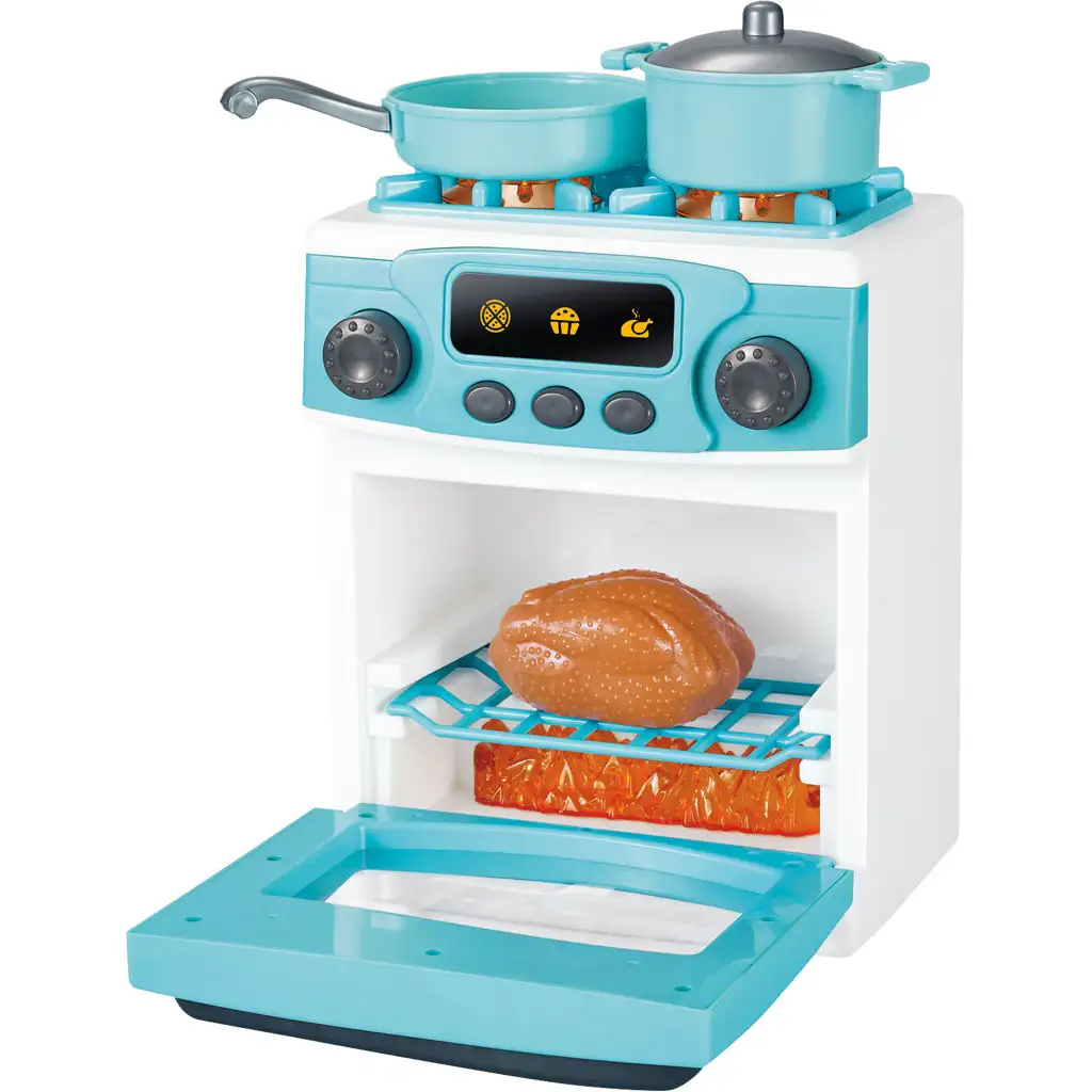 Súprava obsahuje plynový sporák s dvoma horákmi, rúru so svetlom a otváracími dvierkami, panvicu, hrniec a aj hraciu porciu pečeného kurčaťa – takže hra môže začať hneď! Otočné gombíky vydávajú klikanie, vnútro rúry svieti a vďaka hrncom, ktoré sa dajú položiť na sporák, je zážitok z varenia ešte realistickejší. Pri hre na povolania deti zažívajú radosť z varenia, zatiaľ čo sa rozvíja ich jemná motorika, kreativita a schopnosť riešiť problémy.