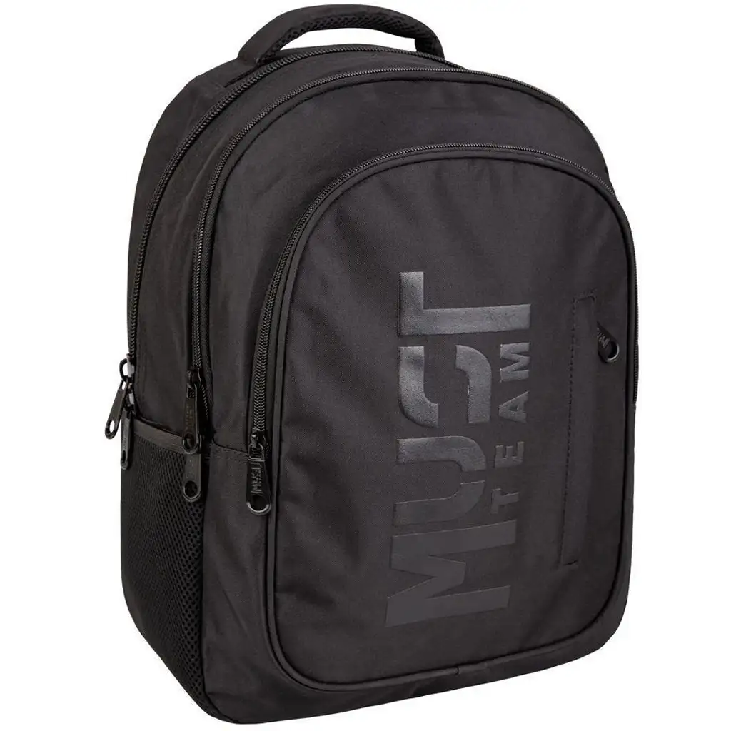 Táto čierna školská taška nie je len štýlová a praktická, ale vďaka kvalitným materiálom Must Team je aj veľmi odolná – ideálna voľba na každodenné školské starosti.