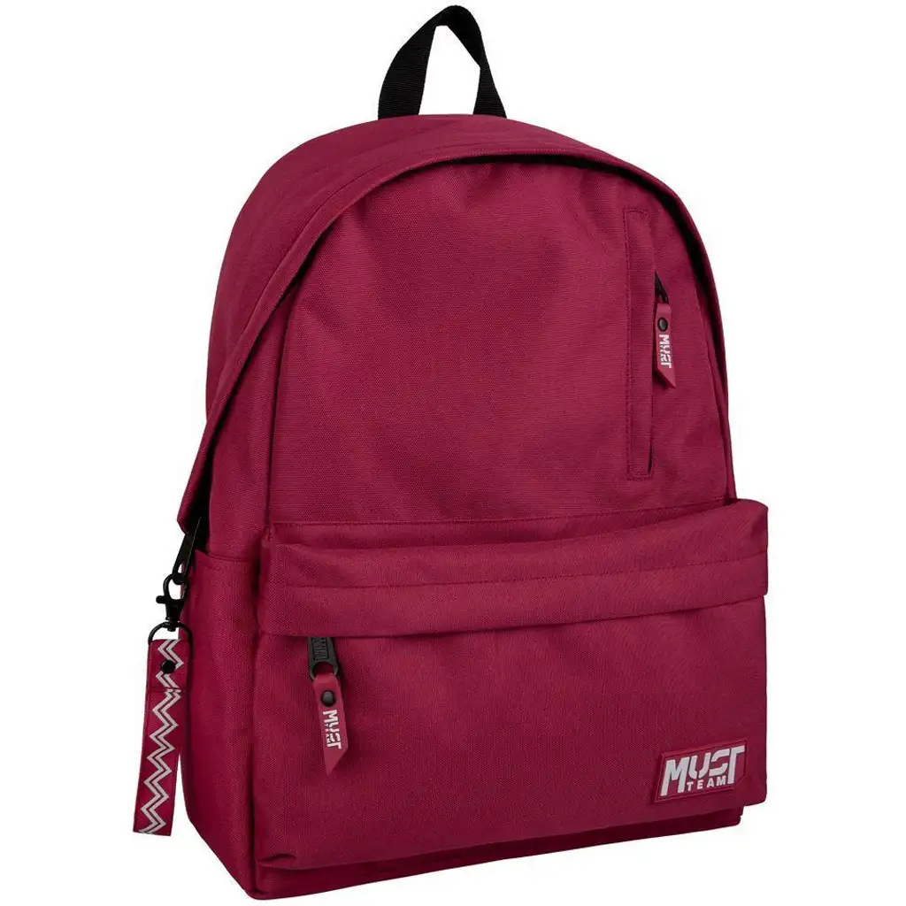 Must Team Monochrome bordová školská taška reprezentuje klasický dizajn v modernom a čistom štýle. Táto taška je ideálnou voľbou pre všetkých žiakov alebo mladých ľudí, ktorí kladú dôraz na funkčnosť aj vzhľad – či už ide o školské dni, mestské akcie alebo víkendové výlety.