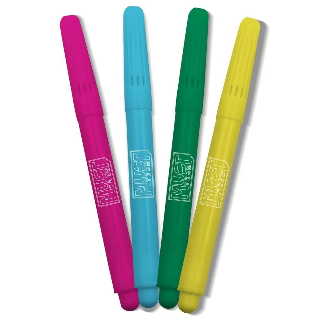4 výrazné farebné fixky (ružová, svetlomodrá, zelená, žltá)