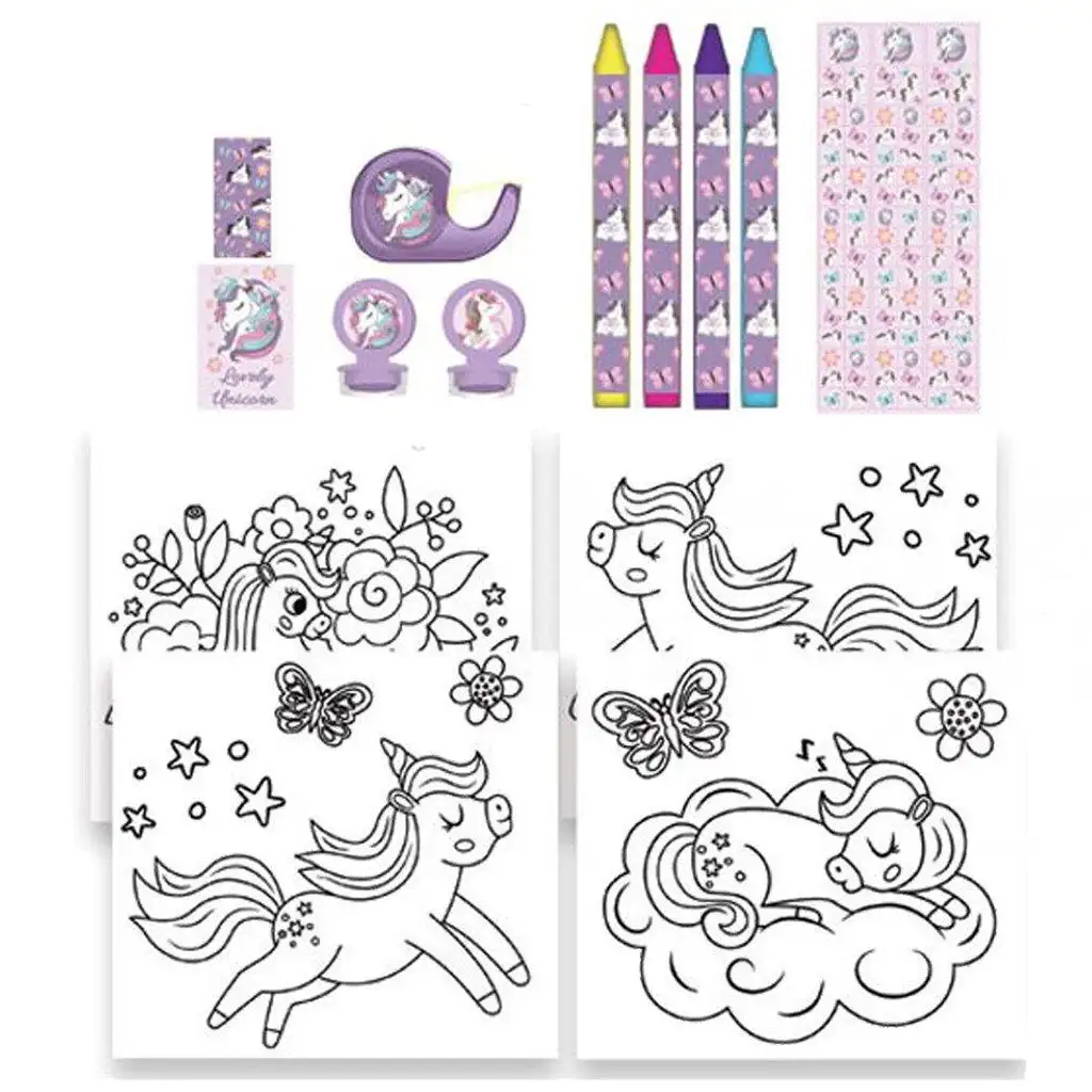 Očarujte deň svojho dieťaťa súpravou na vyfarbovanie Lovely Unicorn, ktorá malých tvorcov prenesie do sveta snov plného farebných jednorožcov, kvetov, hviezd a motýľov! Táto rozkošná 12-dielna súprava je ideálnou voľbou pre každé kreatívne dievčatko, ktoré rado kreslí, vyfarbuje a zdobí. Všetky prvky balenia žiaria nádhernými pastelovými farbami a ladia s milou témou jednorožcov, čo robí hru ešte kúzelnejšou.