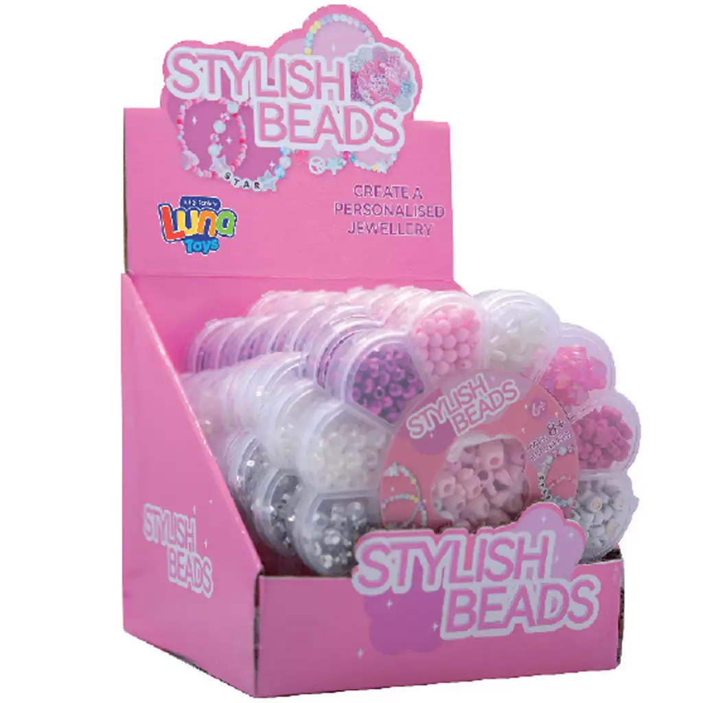 Vytváraj jedinečné šperky podľa svojho vlastného štýlu! Sada korálikov Luna Toys Stylish Beads prichádza v špeciálnej kvetinovej krabičke, plnej nádherných farebných korálikov. Je to ideálna voľba na výrobu náramkov, náhrdelníkov alebo originálnych kľúčeniek.