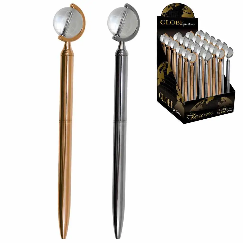 Toto špeciálne guličkové pero nie je len písacie náčinie, ale má na konci otočnú mini zemeguľu, ktorá je nielen dekoratívna, ale môže byť aj inšpirujúca. Modrá farba atramentu zabezpečuje čisté a hladké písanie, zatiaľ čo pohodlná rukoväť umožňuje dlhé písanie bez toho, aby ste cítili únavu v ruke.
