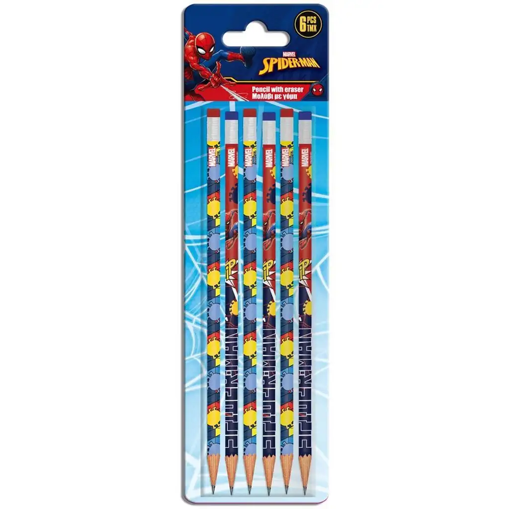 Luna: Sada 6 gumovaných grafitových ceruziek s motívom Spider-Man