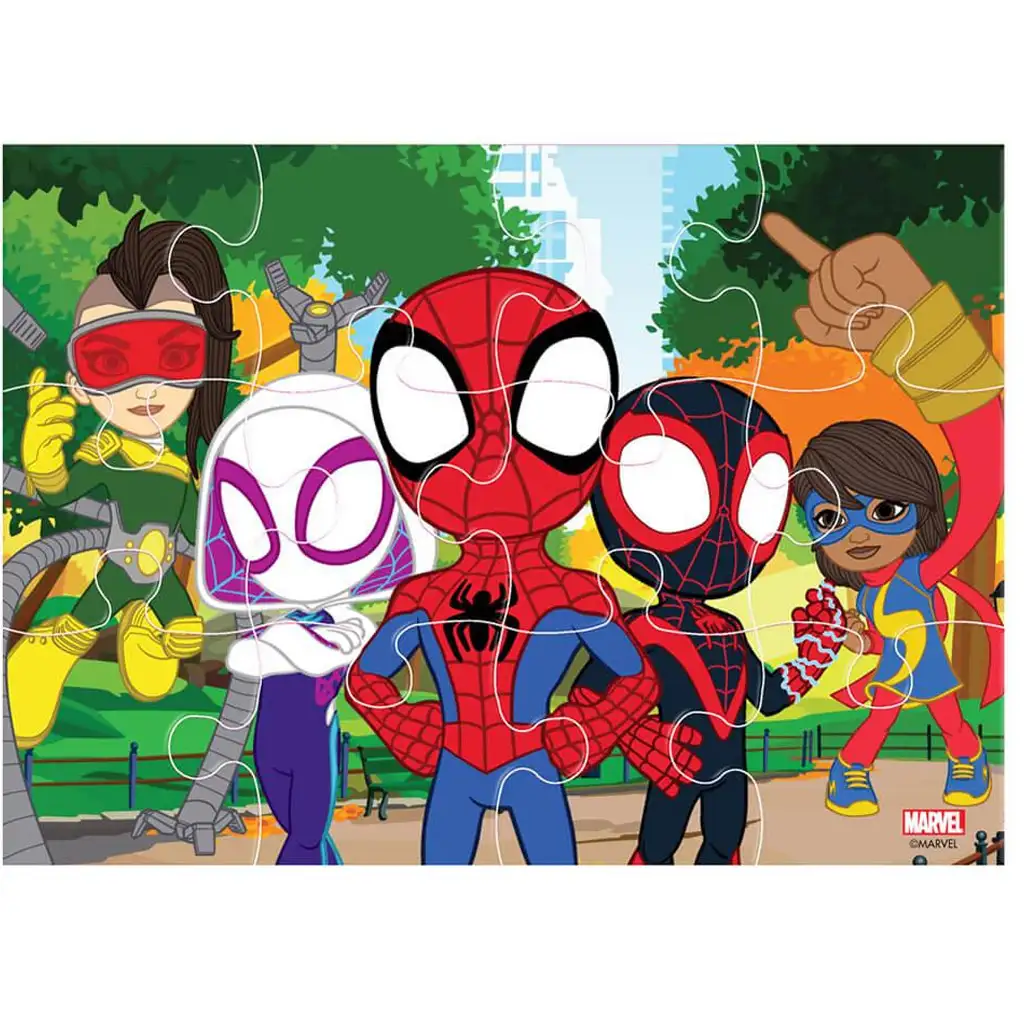 Ak tvoje dieťa miluje Marvel hrdinov, najmä rozprávku Spidey a jeho úžasní priatelia, tento 4 v 1 puzzle set bude preň skutočný zásah do čierneho! Sada puzzle, ktorú vydala Luna Toys, obsahuje štyri rôzne obrázky, z ktorých každý zobrazuje inú scénu zo sveta Spideyho, Ghost-Spider, Milesa Moralesa a ich priateľov. Počet dielikov je rôzny – 12, 15, 20 a 24 dielikov – takže deti postupne rozvíjajú svoje skladacie zručnosti a čelí stále väčším výzvam.