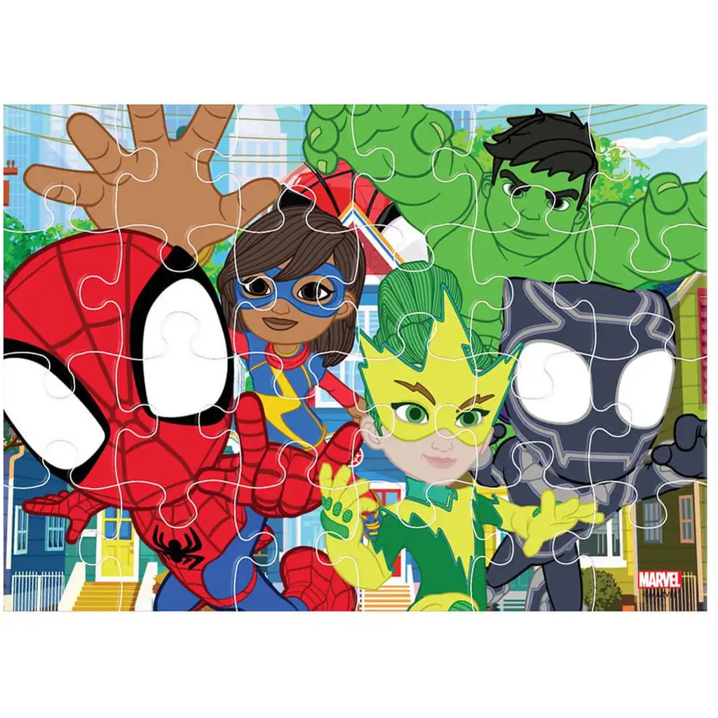 Tento set je ideálny pre deti od 3 rokov, ktoré milujú farebné, veselé obrázky, superhrdinské dobrodružstvá a radi skladajú obrázky so svojimi obľúbenými postavami. Puzzle hra výborne rozvíja koncentráciu, jemnú motoriku, koordináciu oka a ruky, a tiež učí trpezlivosti a pozornosti k detailom. Na obrázkoch sa objavujú najznámejšie Marvel Junior postavy: Spidey, Ghost-Spider, Miles, Ms. Marvel, Hulk, Black Panther a mnoho ďalších – takže každý poskladaný obrázok prináša nové vzrušujúce Marvel momenty.