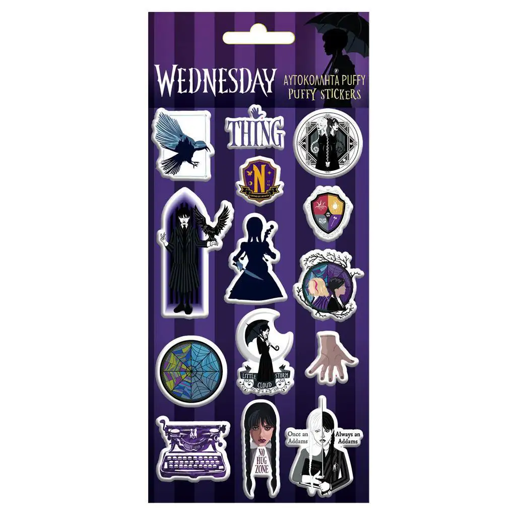 Perfektný výber pre kreatívne tvorenie, dekorovanie denníka alebo ako darček pre fanúšika Wednesday. Mäkké, vypuklé nálepkové prvky sú nielen nápadité, ale aj zábavné na dotyk, takže zaručene poskytnú výnimočný zážitok.